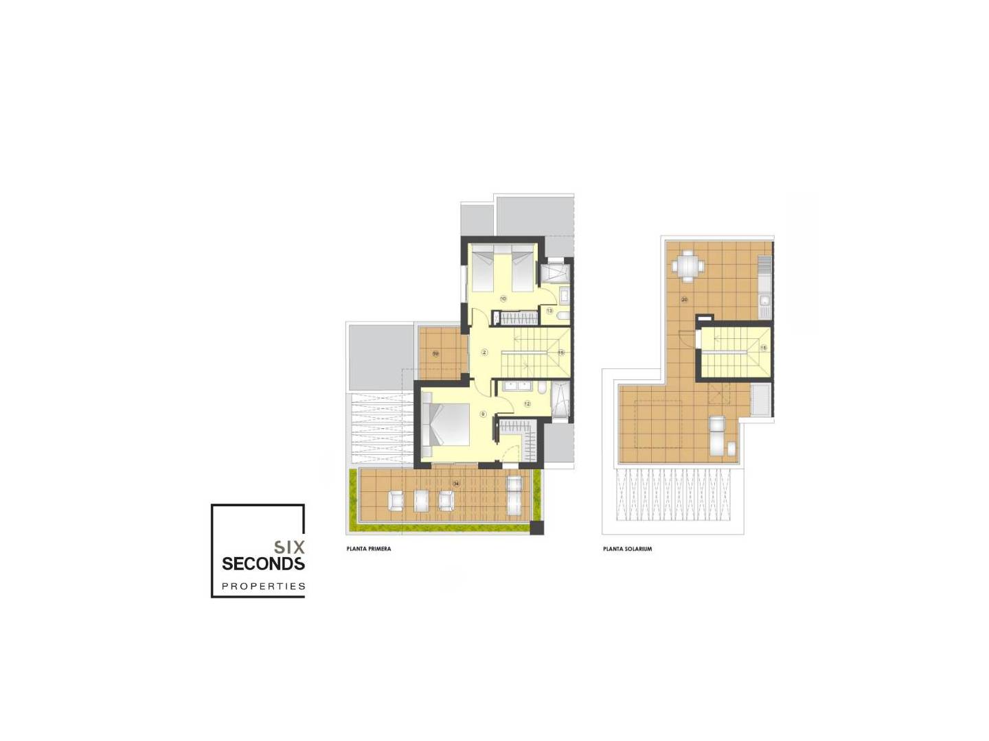 Opciones adicionales: La posibilidad de tener una encantadora piscina privada ofrece la oportunidad de transformar tu patio en un oasis personalizado, perfecto para relajarse y disfrutar del clima soleado de la Costa Blanca. Con espacio de estacionamiento dedicado y un trastero adicional, estas villas ofrecen la practicidad que buscas en tu día a día.