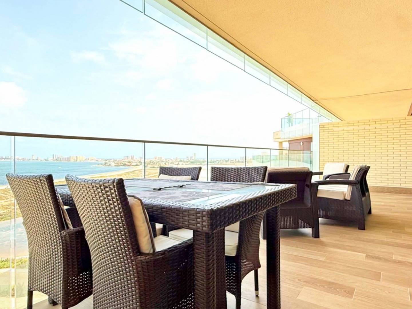 Viva el lujo junto al mar en este espectacular apartamento en la 8ª planta del prestigioso residencial Los Flamencos, en Playa Paraíso, Cartagena. Situado en primera línea de playa, esta vivienda moderna y totalmente amueblada ofrece impresionantes vistas panorámicas al Mar Menor y al Mediterráneo desde su amplio balcón privado. Cuenta con 3 dormitorios, 2 baños, aire acondicionado, plaza de garaje subterránea y trastero. Perfecto como residencia habitual, segunda vivienda o inversión con alto potencial de alquiler. Características destacadas: 3 dormitorios 2 baños Amplio balcón con vistas al mar Amueblado y con aire acondicionado Garaje subterráneo y trastero Zonas comunes exclusivas: Piscina frente al mar Spa interior Gimnasio completo Jardines y zona de picnic Sala de coworking y salón de eventos Parque canino y mirador de aves Zona infantil