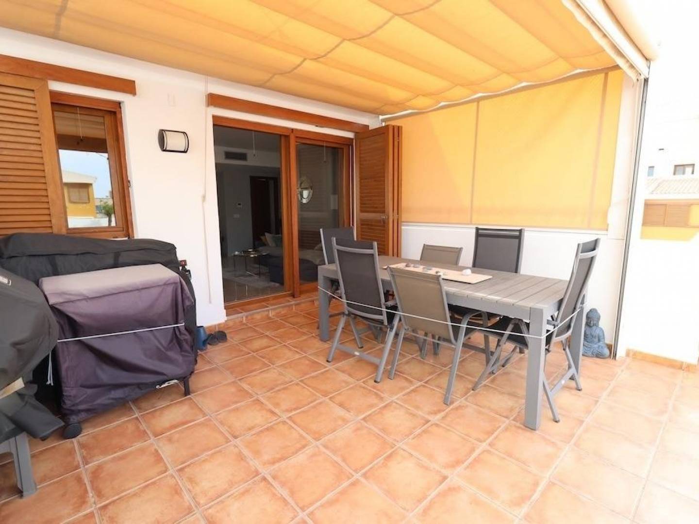 Atico en el Residencial La entrada en Punta Prima, vivienda de 70 m2 con 2 dormitorios, 1 baño, amplio salón comedor con cocina abierta, terraza de 63 m2 con toldo y zona de barbacoa, la vivienda se vende Semi-amueblada con aire acondicionado central y dispone de garaje y trastero, el residencial cuenta con amplias zonas verdes diferentes piscinas comunitarias y a pocos metros de la playa.