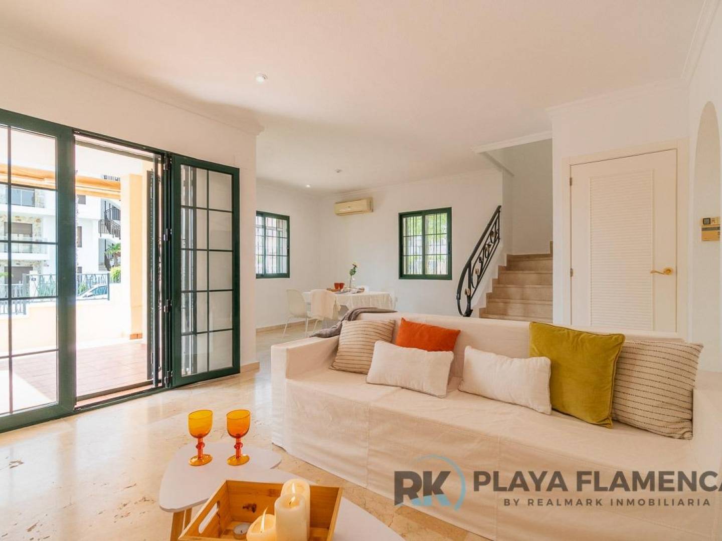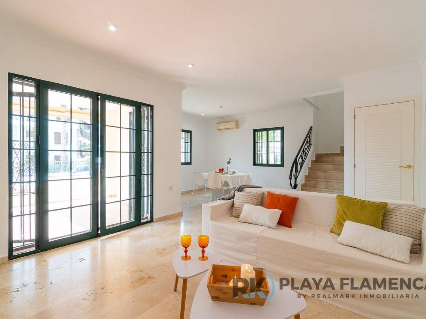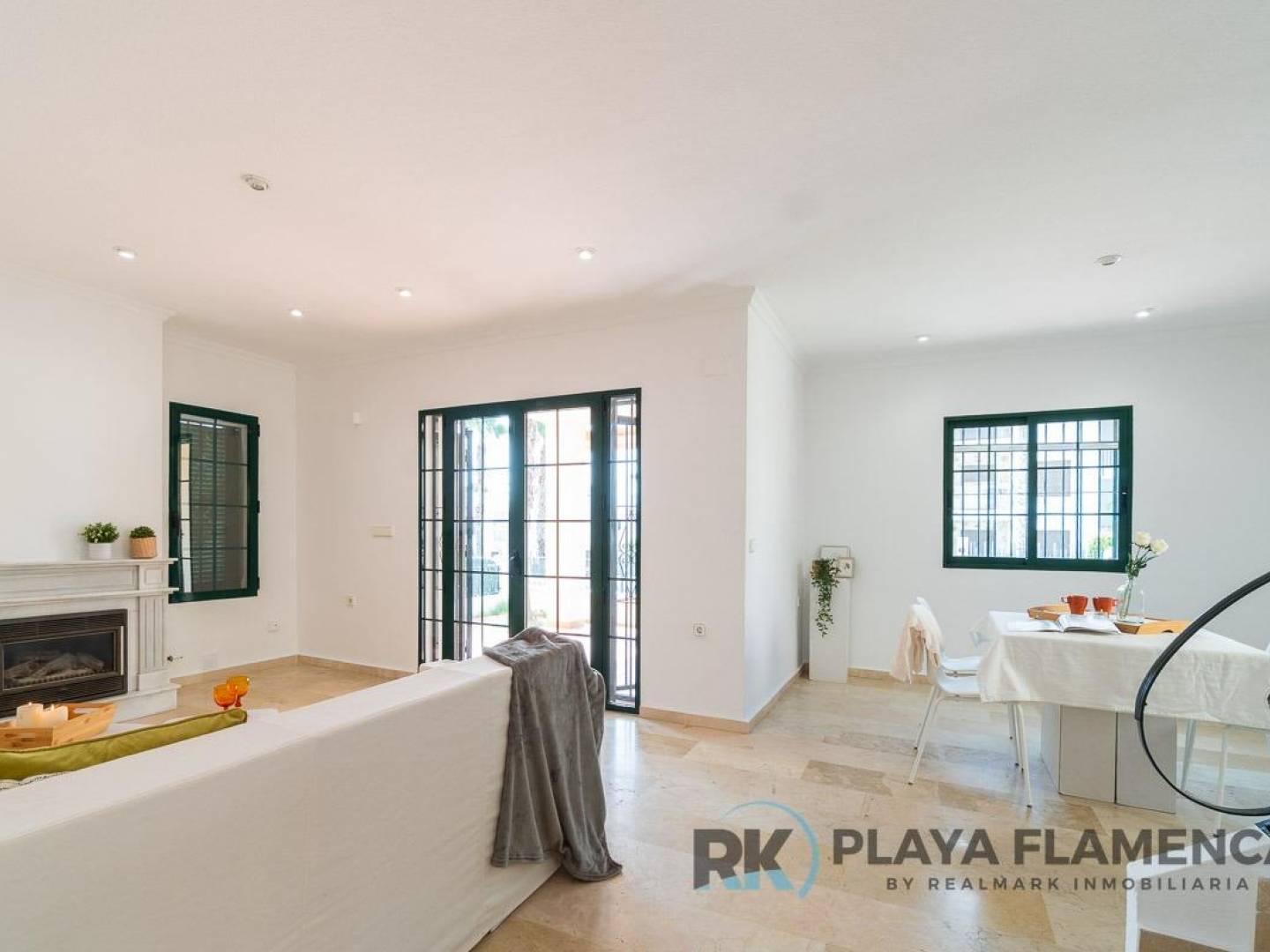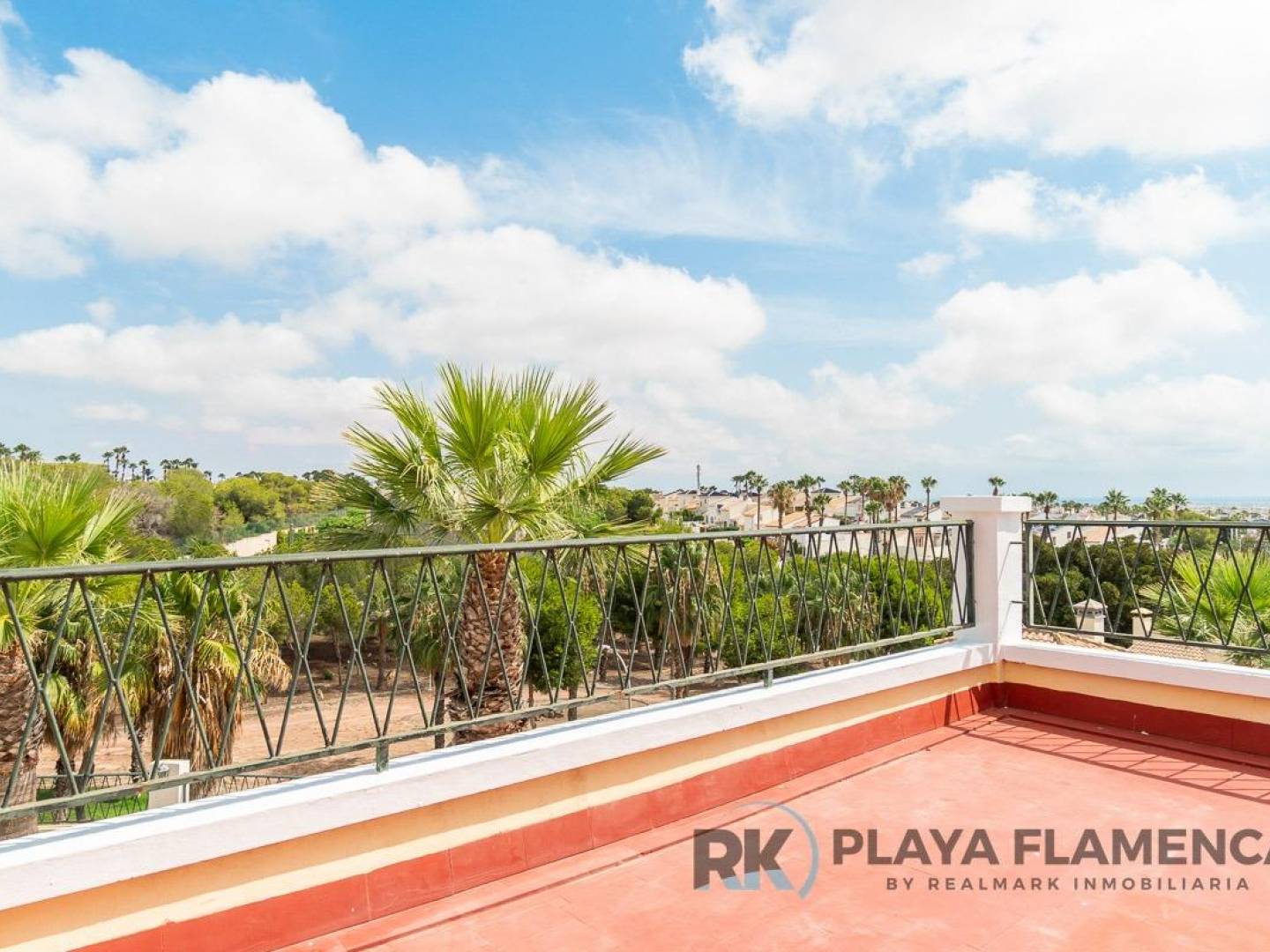 En una de las zonas más tranquilas y exclusivas de la Urbanización VillaMartin, muy cerca de 3 campos de golf y con su propio jardín y piscina, se encuentra ésta preciosa villa con vistas a zonas verdes y perfecta para una gran familia.~La vivienda se encuentra situada en las cercanías de tres campos de golf: el de Las Ramblas, el de Campoamor y el de Villamartín. Además de que tiene muy fácil acceso a la salida de la autopista AP 7, con conexión directa con los aeropuertos de Alicante (ca. 40 Km) y Murcia (ca. 40 Km).~Cuentan con una piscina comunitaria con jardines, donde poder disfrutar de tomar el sol y bañarse con el resto de vecinos y a su vez, tiene su propio jardín y terrazas enlosadas y una piscina que necesita ser reformada. ~El tamaño de la villa es idóneo para quien busca espacio, o para tener invitados y amigos; con sus 3 habitaciones, 2 baños y una buena parcela y zona del jardín. ~La parcela de 410 metros cuadrados es perfecta para tener espacio y sensación de independencia con su jardín enlosado delantero con entrada de vehículos, y su jardín enlosado trasero con vistas despejadas, pero al estar enlosado y no tener gran cantidad de árboles y plantas no necesita mucho mantenimiento y trabajo. La villa está orientada al sur en su fachada principal, terrazas y solarium, por lo que tiene sol prácticamente todo el día. Esta villa es, sin duda, el sueño de muchos.~Y la distribución de la vivienda: accediendo desde el jardín como se ha comentado, se encuentra la primera terraza orientada al Sur-Suroeste, cuenta con sol todo el día pero a su vez, al estar abierta a su jardín y la calle, deja entrar toda la brisa, de esta espaciosa terraza con espacio para sofás y mesas, da paso a la puerta principal de la vivienda con puerta blindada, que abre a la zona de salón y comedor, con chimenea, espacioso y con mucha luz, y a una cocina independiente con su propia puerta y ventana para poder cocinar sin tener problema con los olores y la grasa en el resto de la vivienda. ~También en planta baja cuenta con un dormitorio amplio con armario empotrado y un cuarto de baño con ducha de obra, por lo que si la familia tiene alguna persona de más edad o con problemas de mobilidad, puede hacer vida en ésta planta solamente sin tener que subir y bajar escaleras. ~En la planta primera con acceso por la escalera interior con dos tramos y fácil subida, da paso a los otros dos dormitorios con armarios empotrados y salida directa al amplio solarium y al balcón y también cuenta en esa planta con el segundo baño esta vez con bañera para baños relajantes y muebles de obra. ~Lo que hace que en todas las plantas tengan su propio cuarto de baño, dormitorios y espacio para poder disfrutar tanto en el exterior como en el interior, con terrazas, lo que hace la vivienda perfecta para una gran familia.~ ~La vivienda merece la pena por su amplitud, su luminosidad, su cercanía a todos los servicios y el golf y su tranquilidad. Especialistas en Orihuela Costa