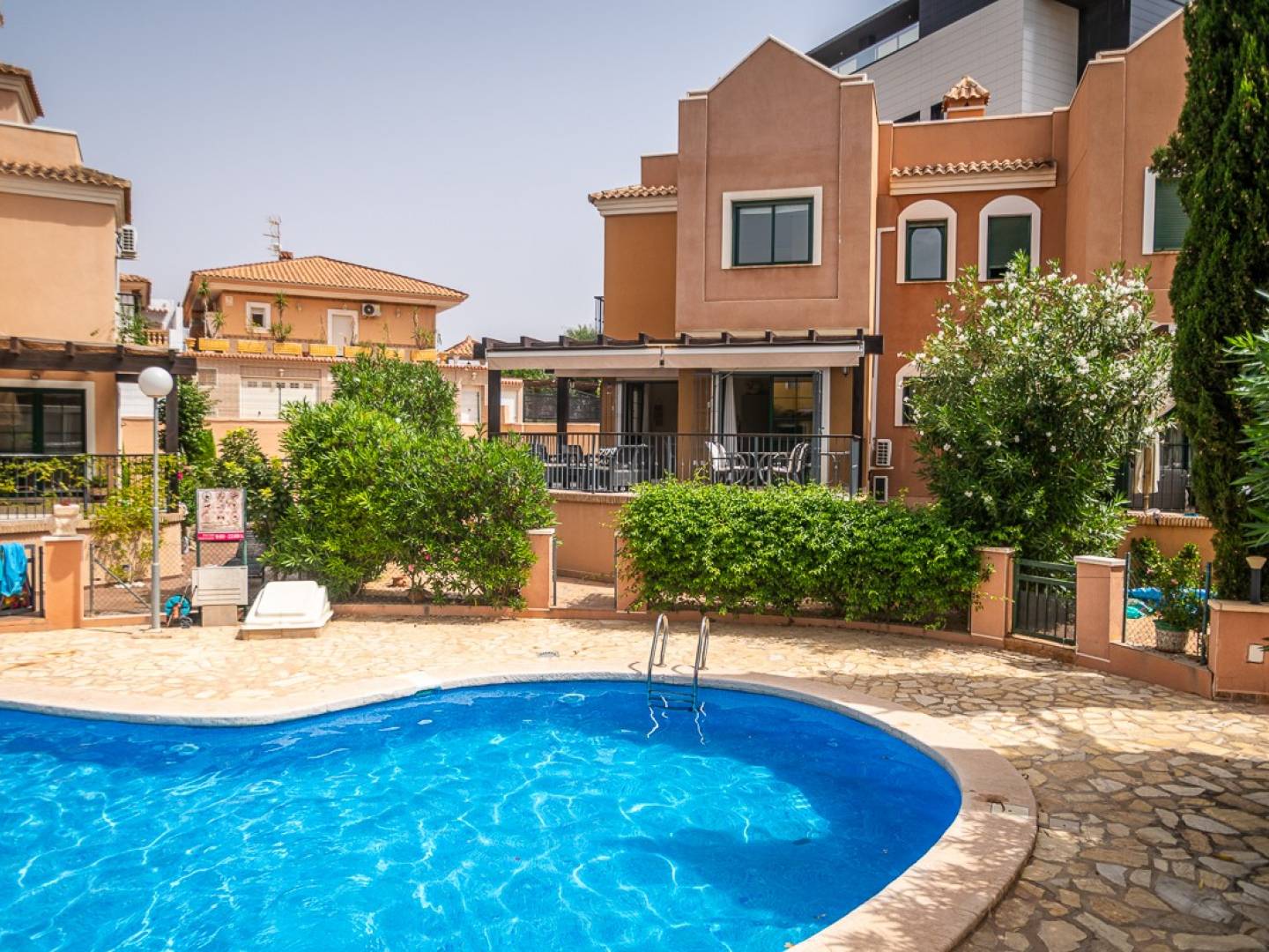 Encantadora casa adosada en Los Balcones, Torrevieja Descubra esta casa adosada bellamente mantenida en la cotizada zona de Los Balcones, donde la construcción de calidad se combina con el encanto mediterráneo. La casa principal ofrece dos amplios dormitorios en la primera planta y un moderno baño, creando un espacio confortable tanto para residencia permanente como para estancias vacacionales. En la planta baja, encontrará una amplia sala de estar que se integra a la perfección con el exterior. La cocina está totalmente equipada y se integra a la perfección con el salón. La amplia terraza con vistas a la piscina está equipada con toldos, lo que la convierte en el lugar ideal para relajarse o entretenerse durante todo el día. Si buscas disfrutar al máximo del ambiente vacacional en tu propia propiedad cuando vengas a España, ¡sigue leyendo! El sótano añade flexibilidad adicional, con dos camas y un baño en suite, perfecto para recibir invitados con comodidad y privacidad. Como toque final, disponemos de un Solarium que ofrece una vista abierta del entorno, como las famosas salinas de Torrevieja. ¿Tienes aficiones o te apasionan las tareas del hogar? ¡Esta casa incluye un amplio trastero junto a tu plaza de aparcamiento en tu propia parcela! Esta casa pertenece a una pequeña y cuidada comunidad con un ambiente mediterráneo que se percibe al instante en sus alrededores. Una amplia zona de piscina, zonas ajardinadas con vegetación y la proximidad a todos los servicios hacen que la vida diaria sea práctica y agradable. Situado a pocos pasos de Mercadona y cerca de playas, restaurantes y servicios, Los Balcones es una de las zonas residenciales más deseadas de Torrevieja. Una propiedad que combina ubicación, espacio y calidad, lista para entrar a vivir y disfrutar. ¿Podría ser esta la casa que buscaba? Contáctenos hoy mismo y visítela.