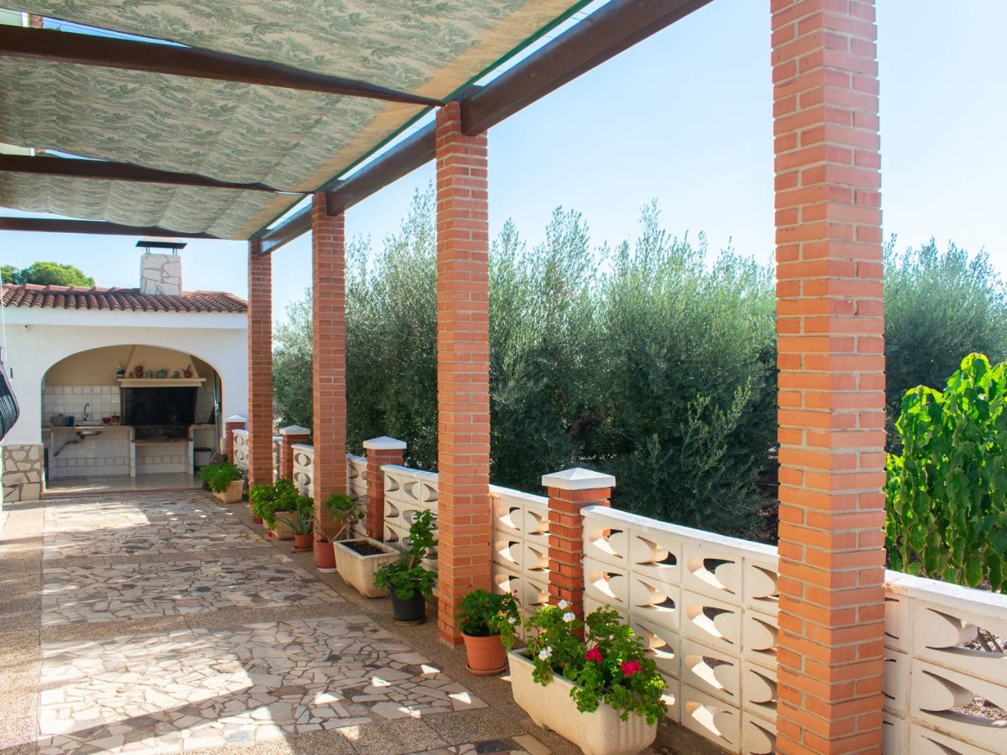 En el exterior, la propiedad dispone de una piscina privada, una barbacoa de piedra construida y dos garajes cerrados con una superficie total de 70 m². La villa se vende completamente amueblada, lista para entrar a vivir y disfrutar desde el primer día.