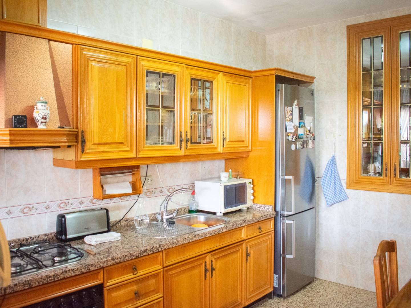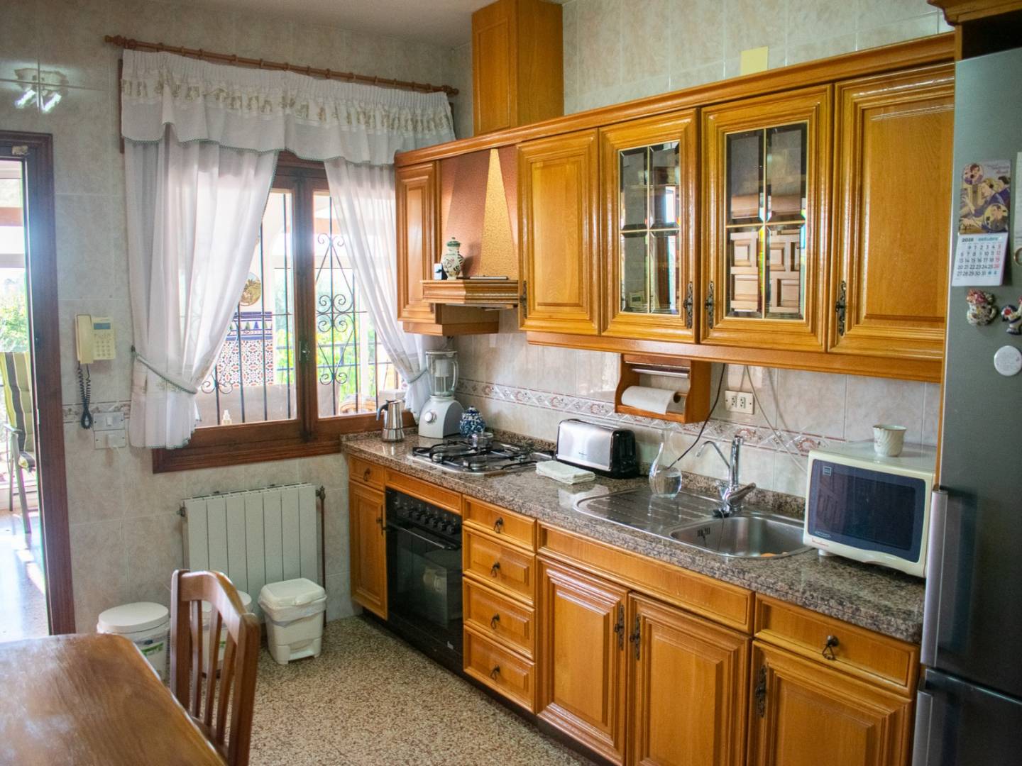 La vivienda, construida con materiales de primeras calidades, ofrece 205 m² distribuidos en 4 amplios dormitorios y 2 baños completos, además de una cocina independiente totalmente equipada, un salón luminoso y un sótano/bodega ideal para reuniones familiares o almacenamiento. Destaca su gran terraza acristalada tipo invernadero con vistas al huerto, un espacio perfecto para disfrutar de la luz natural durante todo el año.