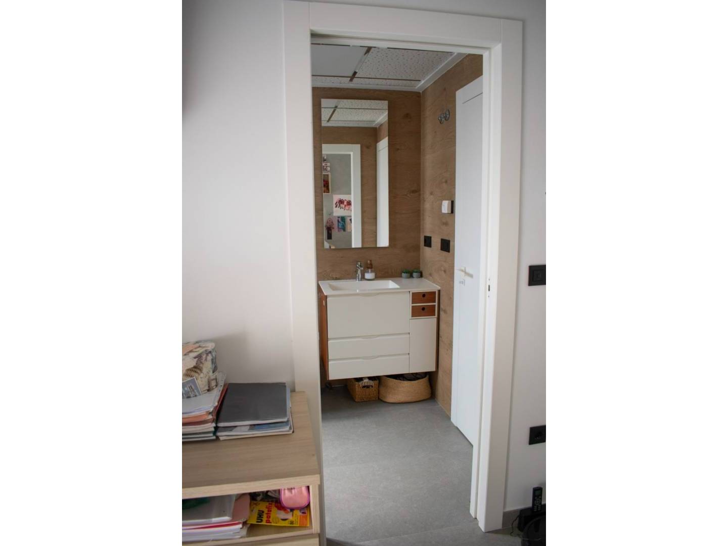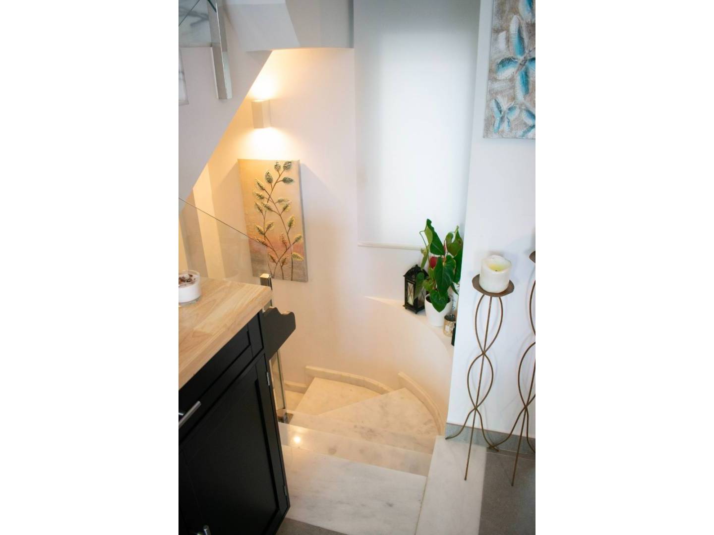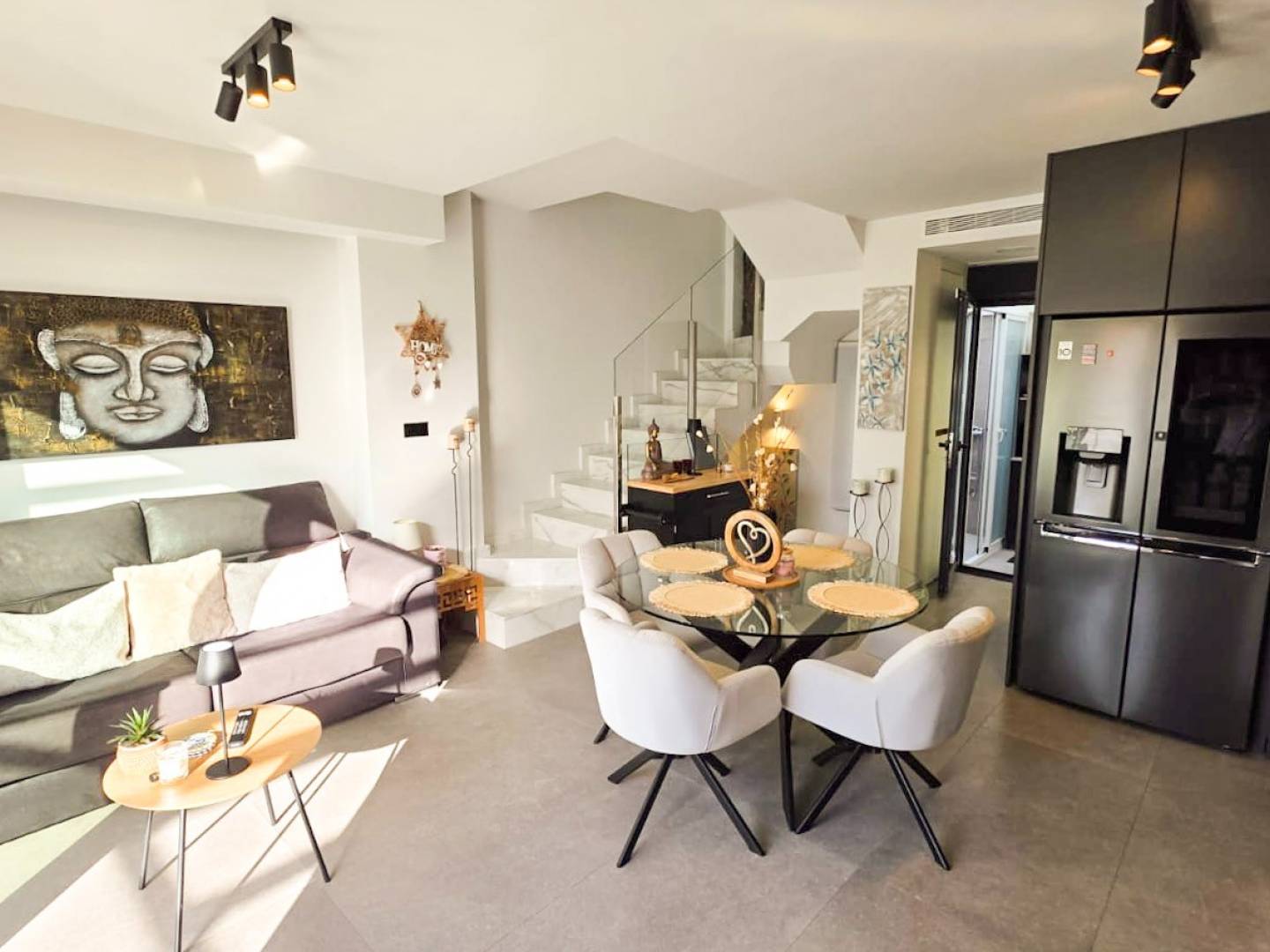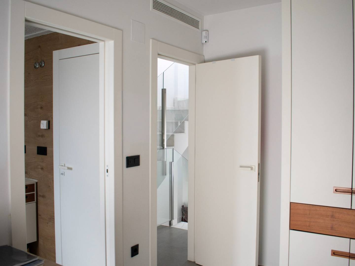 El amplio salón-comedor ofrece un ambiente cálido y luminoso, con acceso directo a una terraza privada desde la que se disfrutan impresionantes vistas al mar y la montaña, que también pueden apreciarse desde dos de los dormitorios. La cocina abierta, completamente equipada, está diseñada para quienes valoran el estilo y la practicidad. En el nivel inferior, un espacio polivalente con luz natural desde el techo ofrece múltiples posibilidades — puede utilizarse como dormitorio adicional, sala de cine en casa, sala de juegos, vestidor o zona de almacenamiento.