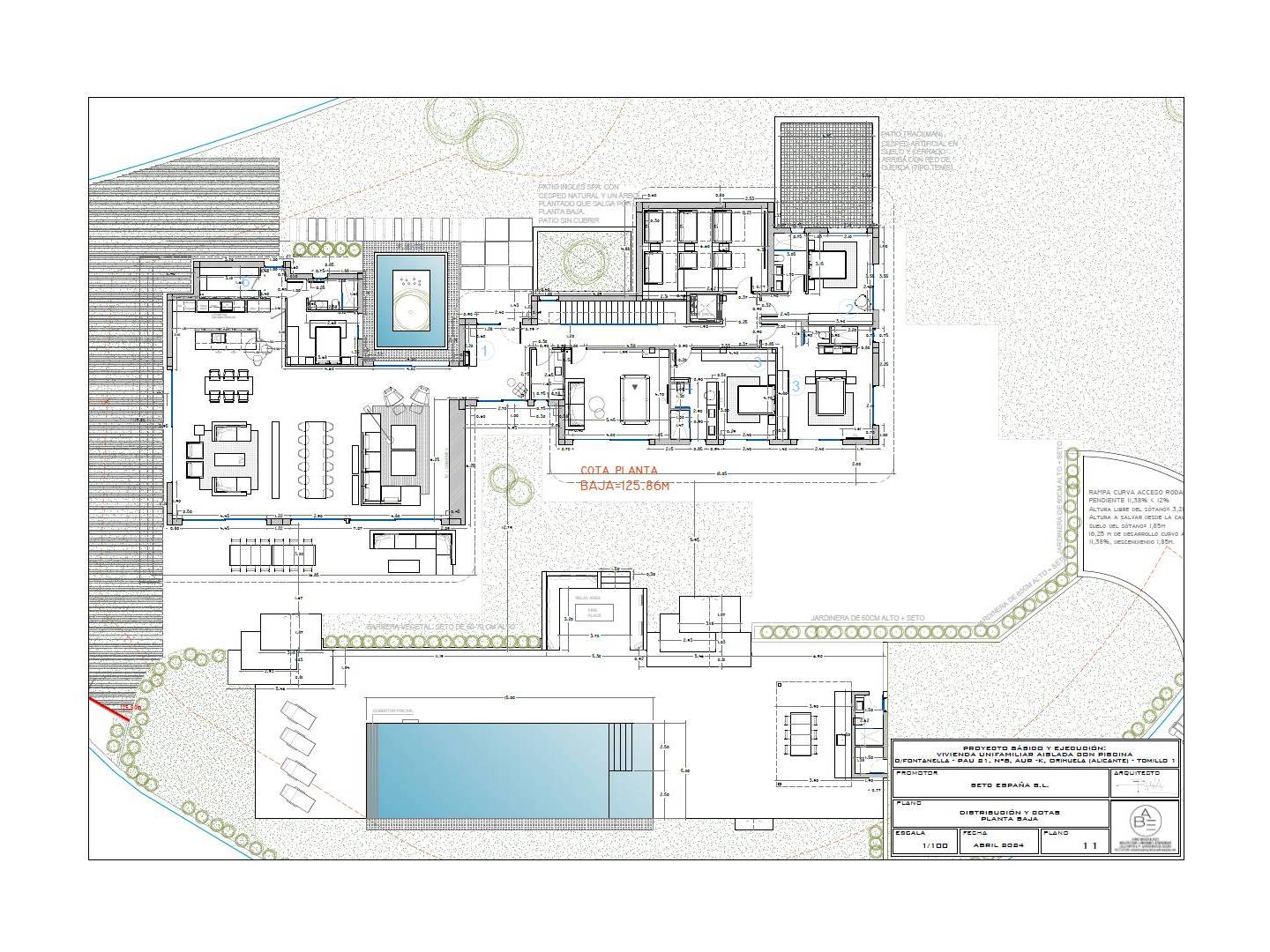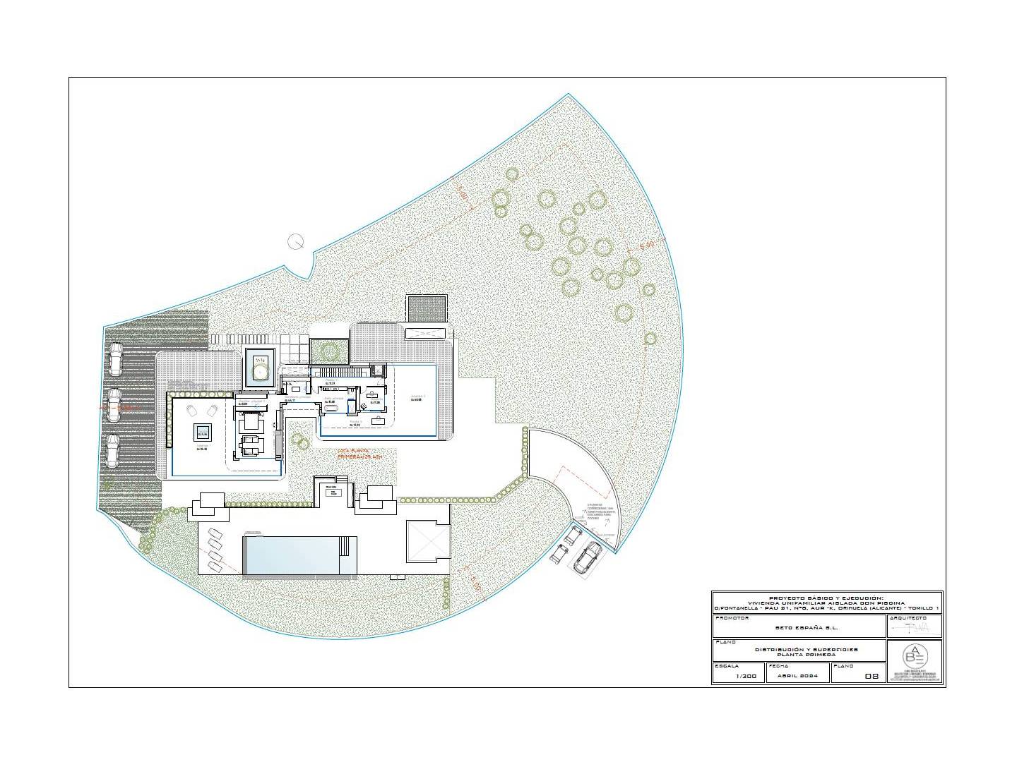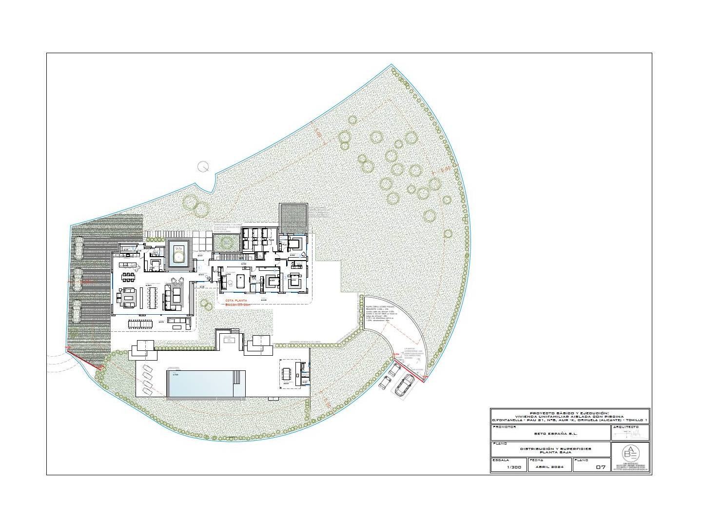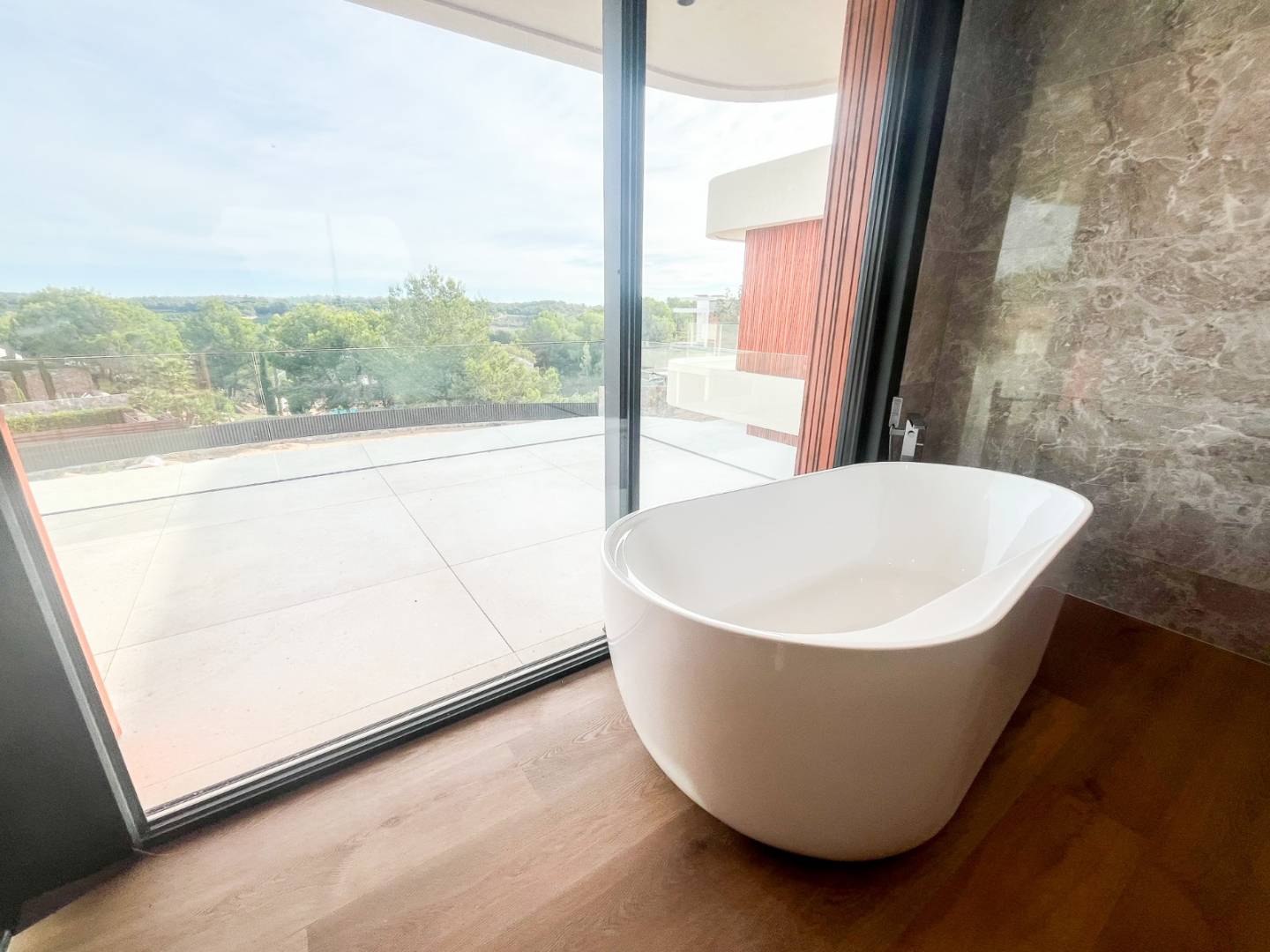 Con aproximadamente 876 m² y una parcela de 3.600 m², la villa destaca por sus líneas orgánicas y una materialidad noble que combina madera natural tratada, piedra y blanco mediterráneo. La arquitectura se abre al paisaje mediante grandes superficies acristaladas y una cuidadosa continuidad interior-exterior que permite que la luz, el jardín y el campo de golf formen parte de la vida diaria. La sensación es de calma, amplitud y privacidad auténtica.