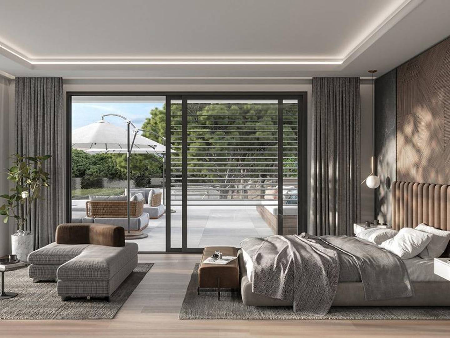Esta villa ha sido diseñada para disfrutar sin salir de casa. Un cine privado invita a sesiones inmersivas con el máximo confort; la sala de entretenimiento acoge momentos sociales y de juego en un entorno de diseño; y la Spa & Wellness Room con jacuzzi propone una rutina de bienestar serena y exclusiva. En el exterior, el paisajismo mediterráneo enmarca una piscina de 15 × 5 m con climatización y cubierta, creando un escenario perfecto para amaneceres tranquilos y veladas memorables bajo el cielo mediterráneo.