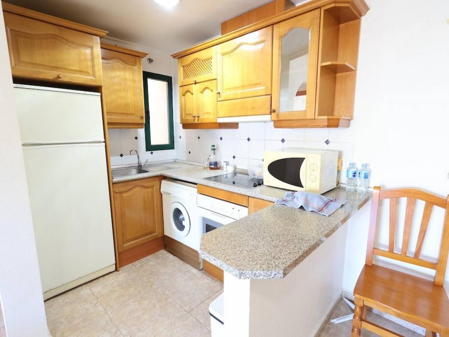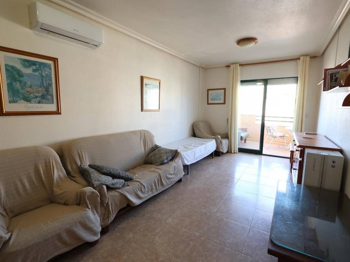 Residencial Aguamarina Apartamento en planta 2ª con garaje. . Acogedor apartamento en segunda planta con una superficie de 56 m², ubicado en el exclusivo Residencial Aguamarina. La vivienda dispone de 2 dormitorios, un baño completo, cocina americana y un luminoso salón-comedor con acceso a una amplia terraza, a la que también se accede desde el dormitorio principal.. . Se vende amueblado, equipado con aire acondicionado, e incluye plaza de garaje subterráneo. Perfecto tanto como residencia vacacional como para vivir todo el año, en una zona muy demandada de la costa.