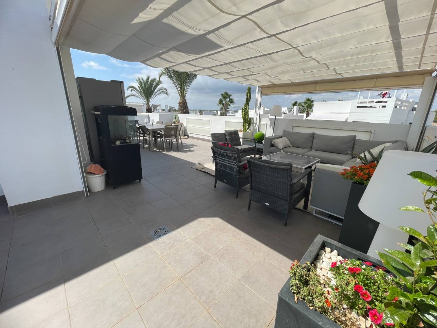 Luminoso ático de dos plantas con terraza y gran solarium privado con vistas al mar cerca del campo de golf Las Ramblas, Orihuela Costa, Alicante