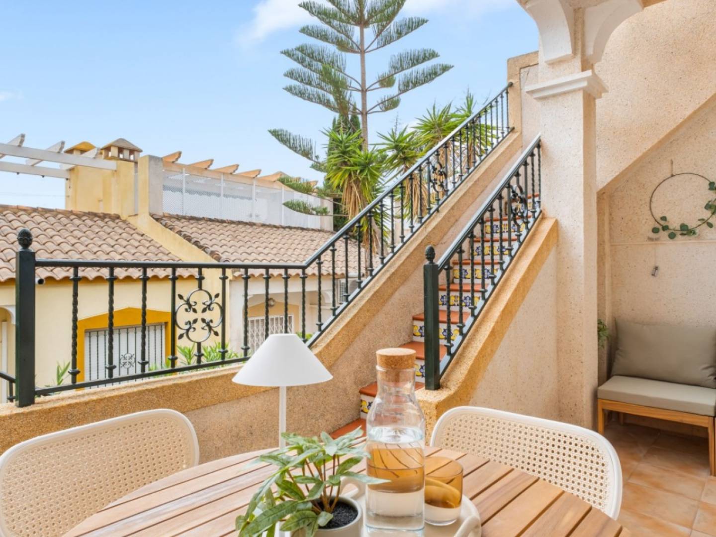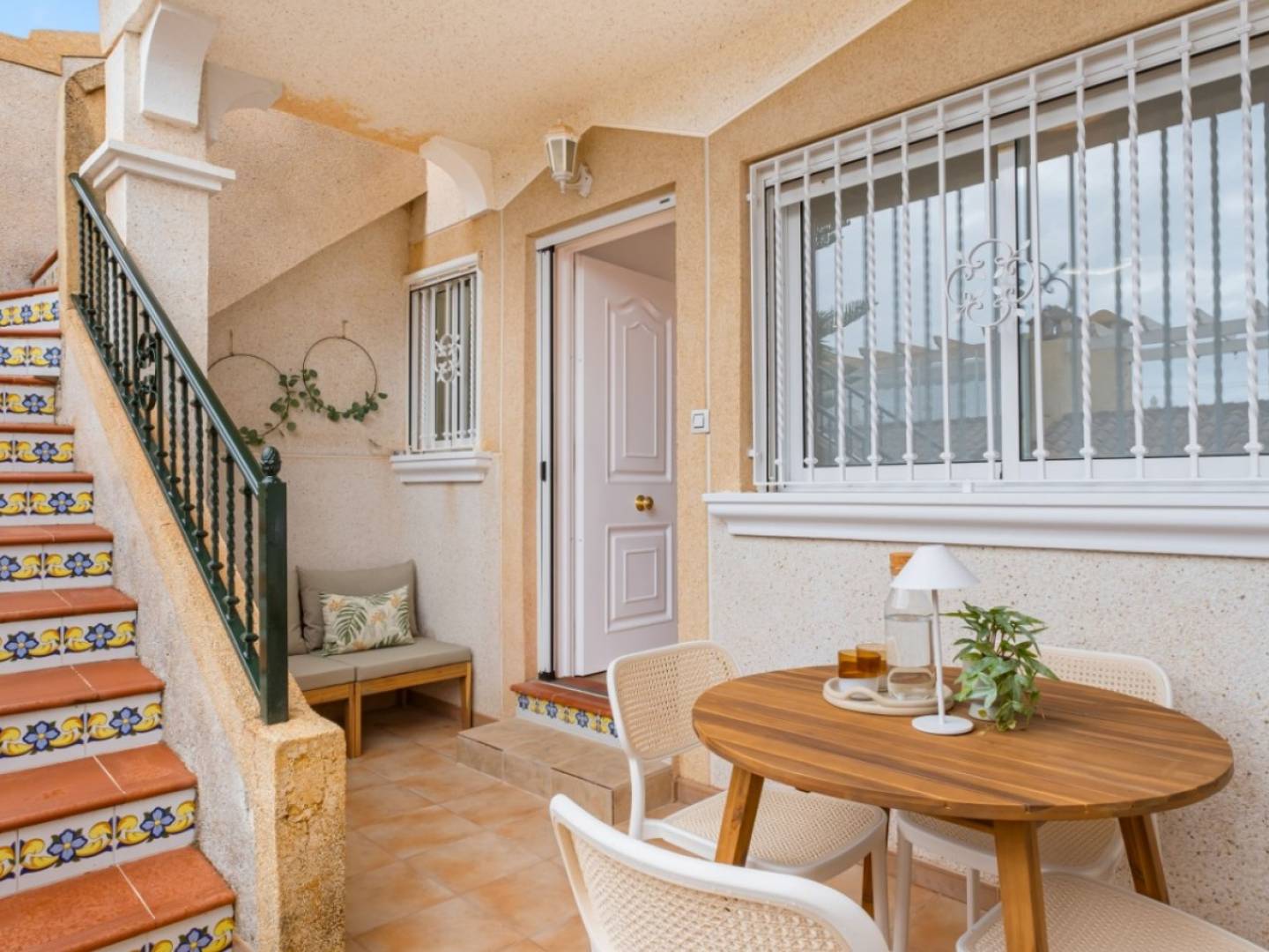 Descubre esta encantadora vivienda en una sola planta que combina a la perfección el encanto rústico español con el estilo elegante del Mediterráneo. Totalmente reformada con materiales de alta calidad y un gusto impecable, esta casa es una joya única—ideal para vivir todo el año, disfrutarla en vacaciones o como inversión con gran potencial de alquiler. Características principales: Interiores acogedores y cálidos: Con suelos de terracota tradicionales, chimenea y cocina abierta con barra americana—perfecta para compartir momentos relajados y comidas con amigos.2 dormitorios y 1 baño: Espacios luminosos y bien aprovechados en sus 65 m² construidos.Solárium privado de 38 m²: Orientación sureste para disfrutar del sol todo el día. Ideal para tomar el sol, cenar al aire libre o relajarse bajo las estrellas.Totalmente amueblado: Listo para entrar a vivir, con muebles de calidad y buen gusto.Trastero y chimenea: Comodidad adicional durante todo el año.Piscina comunitaria: Acceso a una cuidada zona de piscina en una urbanización tranquila y consolidada.Construido en 2000: Cuidadosamente mantenido y modernizado, conservando su carácter original. Ubicación ideal Monte Golf, Villamartín (Orihuela Costa): A pocos minutos de campos de golf de renombre, de la vibrante Villamartín Plaza y de las playas doradas de La Zenia, Cabo Roig y Playa Flamenca. Supermercados, restaurantes y el famoso centro comercial Zenia Boulevard están a un paso. Esta propiedad ofrece el equilibrio perfecto entre tranquilidad y comodidad en una de las zonas más codiciadas de la Costa Blanca. No lo dejes pasar—reserva tu visita privada hoy mismo!