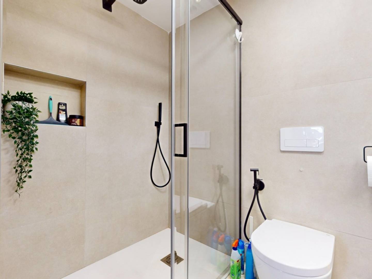Ofrece tres amplios dormitorios con armarios empotrados, tomas de TV y persianas, además de dos baños modernos con calefacción por suelo radiante, ducha a ras de suelo y grifería de gama alta. La cocina rediseñada presenta un concepto estético y funcional, con isla central, electrodomésticos de alta gama y armarios a medida que optimizan el almacenaje. La climatización completa en salón y dormitorios asegura bienestar durante todo el año.