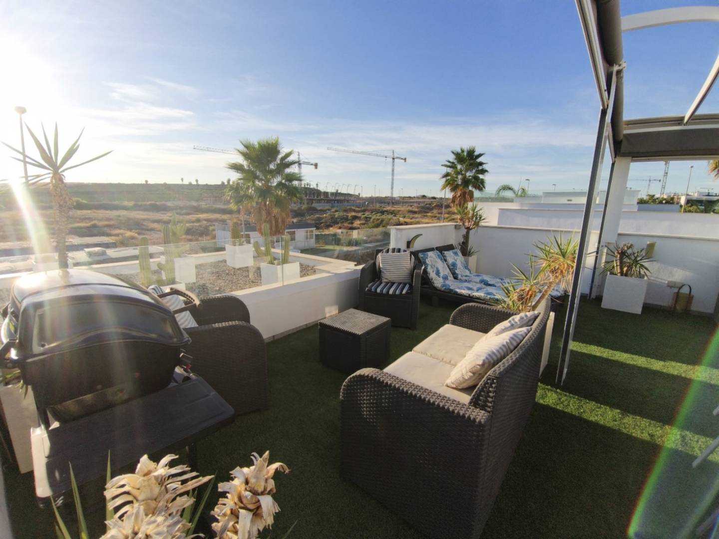 Esta villa moderna independiente de una sola planta en Vistabella Golf redefine el concepto de exclusividad en la Costa Blanca. Situada sobre una amplia parcela de 327,38 m² y con 104,85 m² construidos, esta propiedad ofrece un estilo de vida elegante, funcional y completamente orientado al confort. Dispone de 3 dormitorios —incluyendo un dormitorio principal con baño en suite—, un segundo baño de lujo, trastero interno, y un espectacular solarium de 41,26 m² equipada con jacuzzi privado y pérgola que garantiza sombra y frescor durante todo el año.