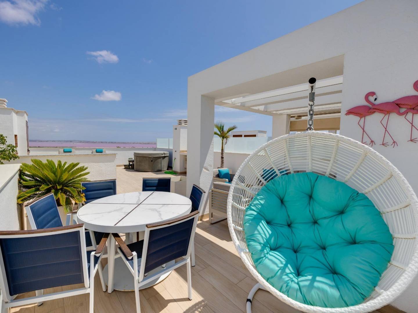 Bienvenido al bungalow número 52 en el prestigioso complejo residencial Laguna Beach, construido por Immosol en 2021 ubicado en Los Balcones, Torrevieja. Esta propiedad casi nueva ha sido utilizada solo para vacaciones unas pocas veces a lo largo del año. Cuenta con una amplia sala de estar-comedor con una cocina de concepto abierto totalmente equipada con electrodomésticos modernos. Salga a su terraza acristalada que conduce directamente a un gran solárium privado completo con lujosas comodidades que incluyen un jacuzzi que muestra impresionantes vistas de la laguna rosa de Torrevieja , montañas y mar .~~El espacio exterior es perfecto para entretener a los invitados o relajarse bajo el sol ; cuenta con una barbacoa (barbacoa) junto con amplio almacenamiento dentro de su espacioso bar de estilo americano e incluye sombras de pérgola y una ducha exterior ¡todo lo que necesitas!~~Esta hermosa casa consta de dos dormitorios acompañados de dos baños uno de ellos en suite con el dormitorio principal . Toda la residencia disfruta de abundante luz natural que ilumina cada rincón mientras ofrece vistas despejadas desde todas las habitaciones .~~Se incluyen espacios de estacionamiento subterráneo cómodos junto con instalaciones de almacenamiento adicionales sin costo adicional. Además, los residentes pueden disfrutar de una de las piscinas comunitarias más exquisitas de Orihuela Costa mostradas hermosamente en nuestras fotos .~~Vivir aquí significa unirse a muchos vecinos satisfechos que han hecho de esto su hogar permanente debido a la comodidad y calidad de vida , mientras que otros lo utilizan durante períodos de vacaciones elegidos .~Además, cerca: Supermercado Mercadona a solo pasos (400 m), excelentes conexiones de autobús que mejoran la accesibilidad entre Torrevieja y Orihuela Costa , etc., así como acceso a través de la AP-7 hacia el Aeropuerto de Alicante ¡Posicionamiento ideal sin duda!~