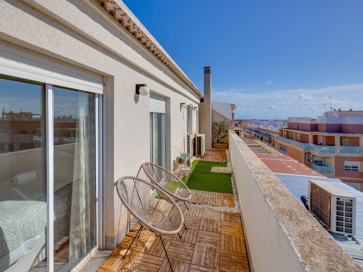¡Descubre este fantástico ático dúplex ubicado justo en el centro de Torrevieja, a solo un corto paseo (¡solo 10 minutos!) de la hermosa Playa del Cura! Esta única propiedad cuenta con un diseño y una distribución excepcionales que te encantarán. El piso inferior incluye un baño moderno, una cocina abierta totalmente equipada con área de comedor, y una encantadora terraza perfecta para disfrutar del sol de la tarde . En la planta superior hay tres amplias habitaciones, otro baño elegante y una acogedora sala de estar que conduce a otra soleada terraza donde puedes disfrutar de la luz del día todo el día . Además, hay un área de lavandería con acceso independiente a un trastero en la terraza . Con todas las comodidades a poca distancia debido a su ubicación privilegiada en el centro de Torrevieja ; esta propiedad es ideal tanto para vivir todo el año como para vibrantes vacaciones de verano ¡un vecindario muy solicitado espera tu llegada!~