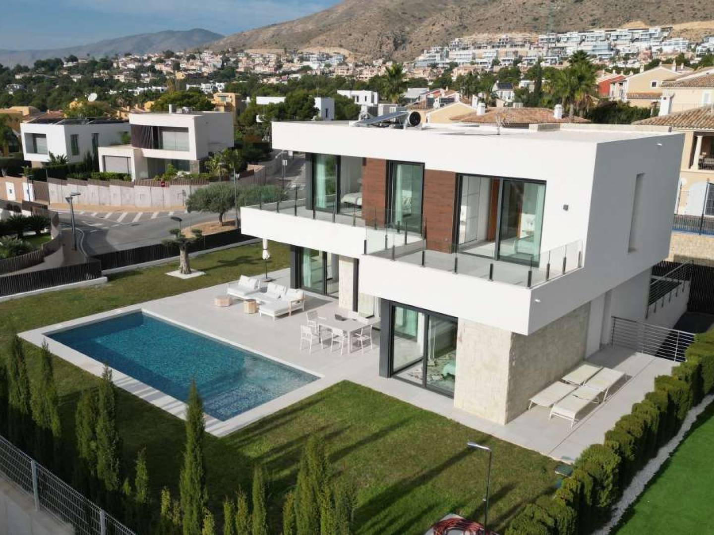 GestaliHome presenta esta exclusiva villa de lujo con vistas al mar, situada en Calle Berlín, Sierra Cortina (Finestrat), una de las zonas residenciales más demandadas y prestigiosas de la Costa Blanca por su entorno natural, seguridad y cercanía a playas, campos de golf y servicios de primer nivel.La vivienda destaca por su arquitectura moderna, líneas limpias y una cuidada combinación de diseño, amplitud y funcionalidad. Se asienta sobre una parcela privada de 691,75 m² y ofrece una superficie construida total de 411 m², distribuidos en tres plantas, con espacios interiores y exteriores pensados para disfrutar del estilo de vida mediterráneo durante todo el año.El exterior alberga un jardín con césped natural y arbolado, así como una piscina privada de 10 × 4 metros con iluminación LED, creando un entorno elegante y muy luminoso.En la planta principal, la vivienda ofrece un amplio espacio diáfano que integra cocina, salón y comedor, creando una zona de día moderna y acogedora, conectada directamente con el exterior mediante grandes ventanales. En esta planta se encuentra también un dormitorio con baño completo, ideal para invitados o como dormitorio principal en planta baja, así como una zona de lavadero independiente.La planta superior está destinada a la zona de descanso y cuenta con tres dormitorios, todos con acceso a amplias terrazas descubiertas. El dormitorio principal dispone de vestidor y baño en suite, mientras que los otros dos dormitorios comparten un baño completo, ofreciendo comodidad y privacidad para toda la familia.La planta sótano añade un gran valor a la vivienda, con un espacio polivalente tipo playroom / sala de cine, un garaje de grandes dimensiones y una habitación adicional con iluminación natural y baño completo, perfecta como dormitorio de invitados, despacho o zona independiente.Entre sus calidades destacan la climatización por conductos, el suelo radiante en toda la vivienda, las persianas eléctricas en todas las habitaciones y un cuidado diseño interior donde sobresalen las puertas de roble americano macizo de suelo a techo, un detalle diferenciador que refuerza la sensación de lujo y calidad constructiva.Por ubicación, calidades y distribución, esta propiedad representa una oportunidad única como residencia habitual, segunda residencia o inversión, en una zona consolidada y de alta demanda, a pocos minutos de la Playa de Poniente, campos de golf, centros comerciales y conexiones principales.