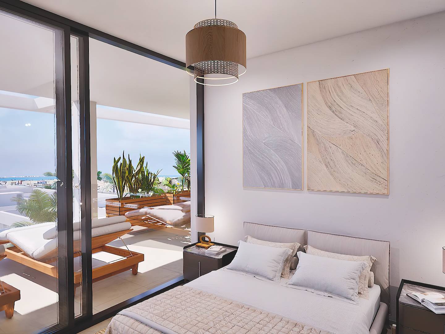 Estos lujosos pisos de 2 o 3 dormitorios y 2 baños están situados a solo 650 metros de las playas de Mar De Cristal. Cada uno cuenta con un salón amplio que se conecta con una moderna cocina abierta y grandes ventanas correderas, que permiten un acceso directo a la terraza delantera. Desde allí, se pueden disfrutar de hermosas vistas a la montaña, mientras que los áticos ofrecen fantásticas vistas al mar. El precio de estas propiedades incluye una plaza de aparcamiento subterráneo y un trastero, lo que añade comodidad y funcionalidad.