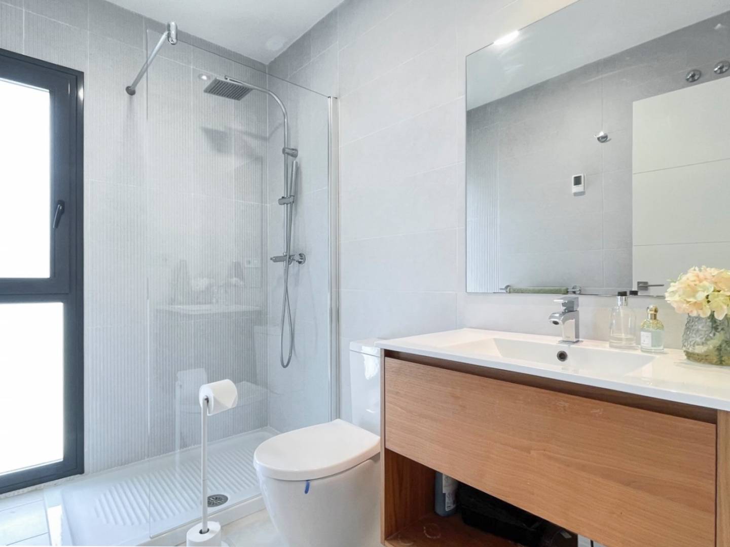 La parcela cuenta con entrada independiente y plaza de aparcamiento, mientras que las amplias cristaleras garantizan una excelente entrada de luz natural, aportando una agradable sensación de amplitud en toda la vivienda. Los dormitorios están equipados con camas dobles, los baños se entregan totalmente terminados y amueblados, y la villa se vende completamente amueblada, lista para entrar a vivir o para destinarla al alquiler vacacional o de larga temporada.