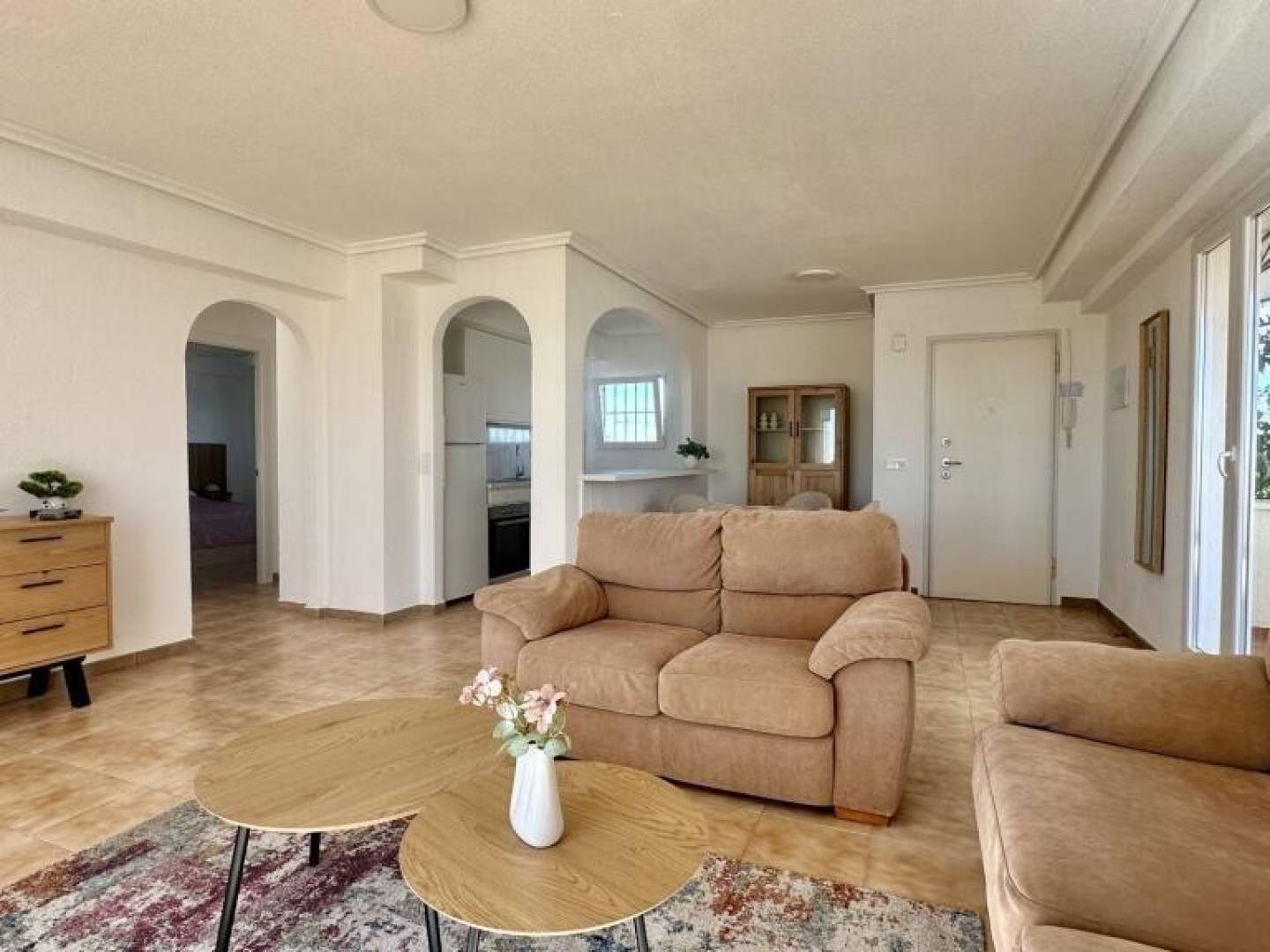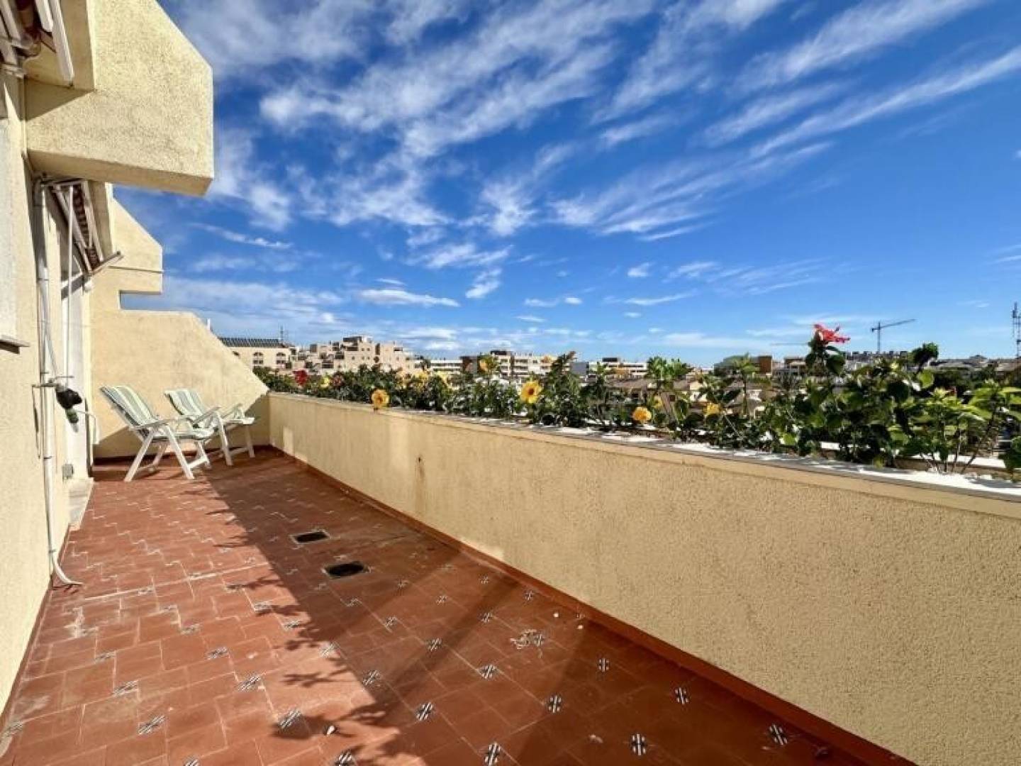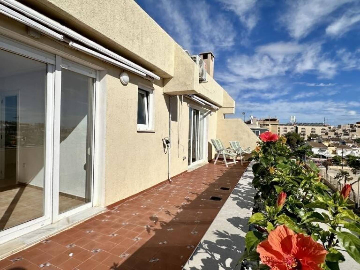 Descubra este ático en Torrevieja, una propiedad que combina ubicación privilegiada, confort y estilo mediterráneo, ideal tanto como residencia habitual como inversión. Situado en una tercera planta con ascensor, este elegante apartamento de 85 m² destaca por su abundante luz natural y su cuidada distribución, ofreciendo 2 dormitorios, uno de ellos con acceso directo a la terraza, 2 baños completos, una cocina abierta totalmente equipada y un amplio salón-comedor con salida a una espectacular terraza. El gran valor añadido de esta vivienda son sus terrazas con una superficie total de 50 m², desde donde se disfrutan de vistas al mar y de un entorno perfecto para relajarse o compartir momentos al aire libre. La propiedad se entrega amueblada, cuenta con aire acondicionado, y se encuentra muy cerca de la playa, así como de todos los servicios esenciales: supermercados, restaurantes, tiendas, farmacias y zonas de ocio. Una oportunidad única para quienes desean vivir junto al mar sin renunciar a la vida urbana, en una de las zonas más demandadas de la Costa Blanca.