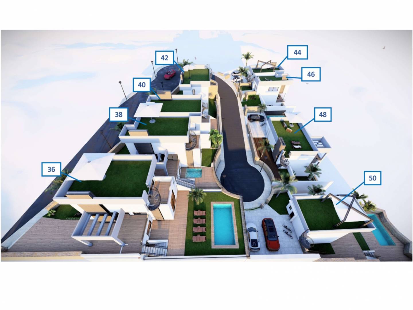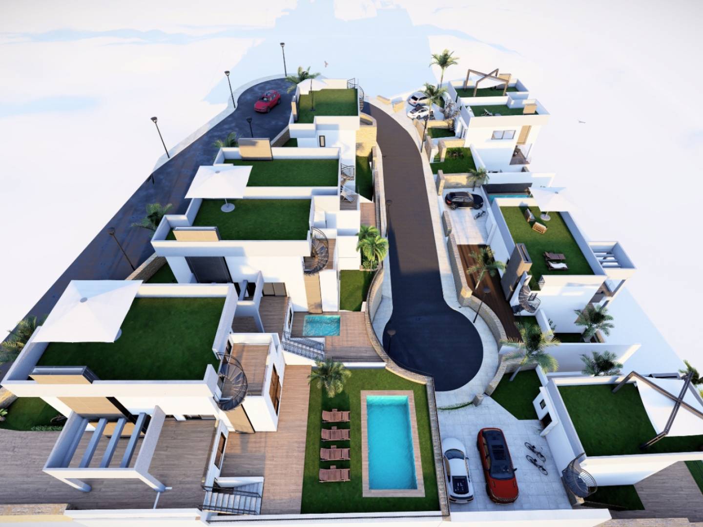 Villa Semi Adosada de dos plantas situada en una parcela de 176.00m² con bonitas zonas verdes que rodean la vivienda, una gran piscina privada de 2.5X4M y una plaza de aparcamiento descubierta. Interior de la vivienda de 143.40m² que se distribuyen en un amplio salón comedor unido a una bonita cocina americana con barra desayunadora en península, y un aseo de cortesía en la planta de abajo, en la planta alta dos dormitorios dobles y un baño independiente con suelo radiante, acceso desde ambos dormitorios a una bonita terraza de 16.80m².