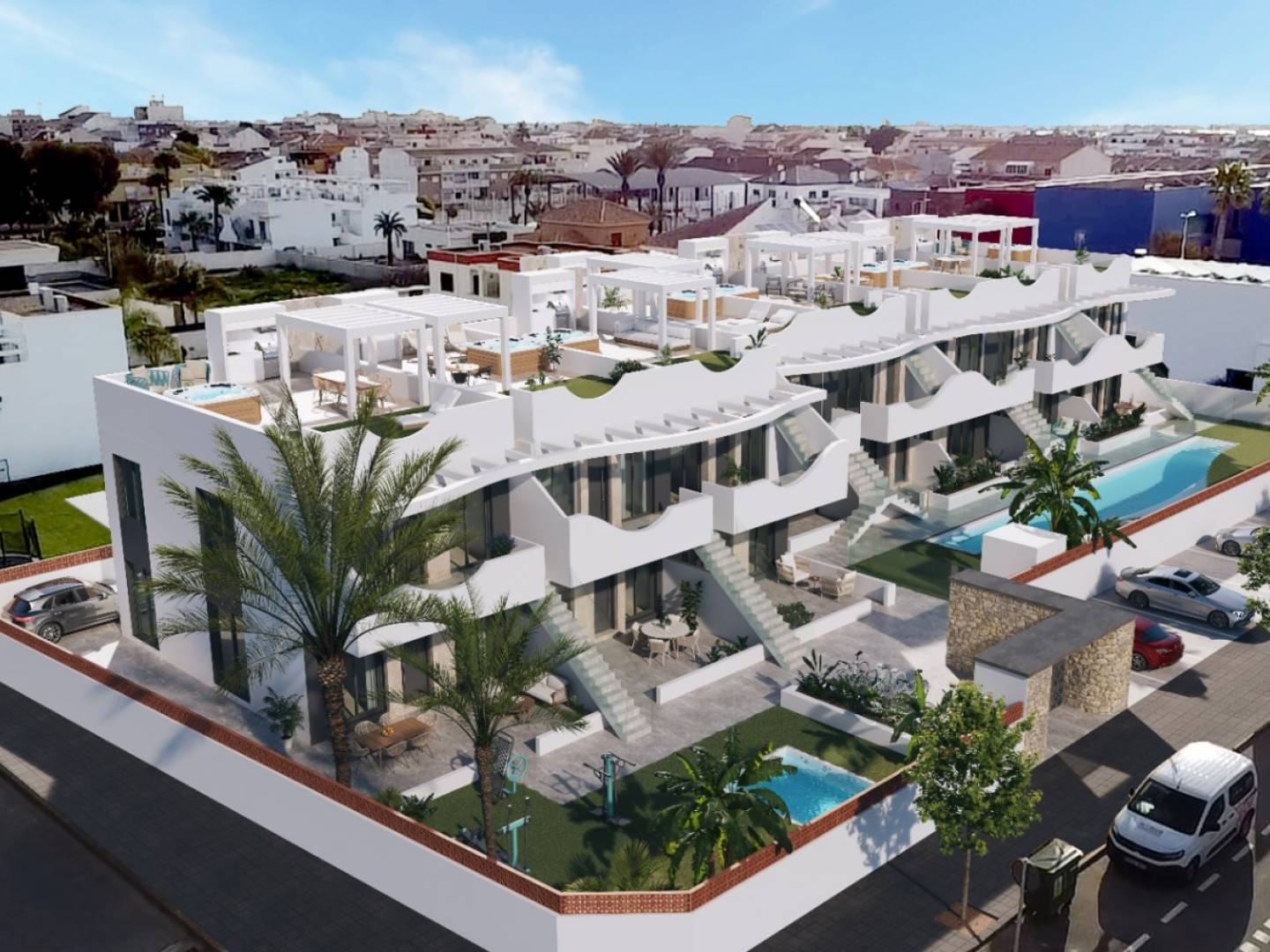 Un Refugio Moderno en Pilar de la Horadada Descubre este encantador bungalow ubicado en Pilar de la Horadada, un destino privilegiado en la provincia de Alicante. Este hogar cuenta con un diseño moderno y funcional, ideal para quienes buscan la comodidad y el estilo en un solo lugar. Características del Inmueble Con una superficie construida de 98.63 m² y útil de 67.50 m², este bungalow se distribuye de manera eficiente ofreciendo dos acogedoras habitaciones y dos baños completos, pensados para una vida cómoda. La cocina americana conecta perfectamente con el salón, creando un ambiente ideal para disfrutar de momentos agradables con familiares y amigos. Espacios Exteriores Acogedores Una de las joyas de esta propiedad es su terraza de 31.13 m², que invita a disfrutar del clima cálido y soleado que caracteriza la región. Perfecta para relajarse con una buena lectura o compartir una comida al aire libre, la terraza se convierte en un espacio de transición hacia el estilo de vida mediterráneo. Comodidades que Marcan la Diferencia Este bungalow se complementa con modernas instalaciones pensadas para el bienestar y la seguridad de sus habitantes. El sistema de aire acondicionado y calefacción por conductos asegura un ambiente confortable durante todo el año. La propiedad cuenta, además, con doble acristalamiento, lo que garantiza eficiencia energética y tranquilidad. La puerta de seguridad y el acceso a plaza de aparcamiento añaden un plus de comodidad a la vida diaria. Para quienes necesitan espacio adicional, se incluye un trastero, perfecto para almacenar enseres y mantener el hogar organizado. Comunidad y Entorno Los residentes de este bungalow podrán disfrutar de una piscina comunitaria, ideal para disfrutar de los meses de verano y socializar con vecinos. La orientación suroeste garantiza que el hogar reciba la luz natural óptima a lo largo del día, creando un ambiente cálido y acogedor. Ubicado en Pilar de la Horadada, este bungalow se beneficia de buenas comunicaciones y servicios cercanos, ofreciendo la conveniencia de tener todo lo necesario a un paso. La proximidad a hermosas playas, tiendas y restaurantes añade valor a esta propiedad, convirtiéndola en una opción atractiva tanto para residencia habitual como para escapadas vacacionales. Este bungalow representa una oportunidad única de adquirir un hogar que combina modernidad, comodidad y un entorno privilegiado. No dejes pasar la oportunidad de vivir en un lugar donde cada día se siente como unas vacaciones.