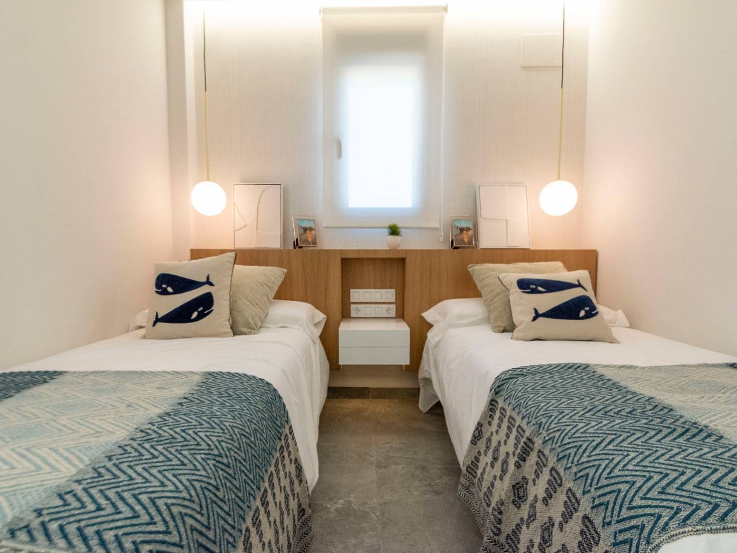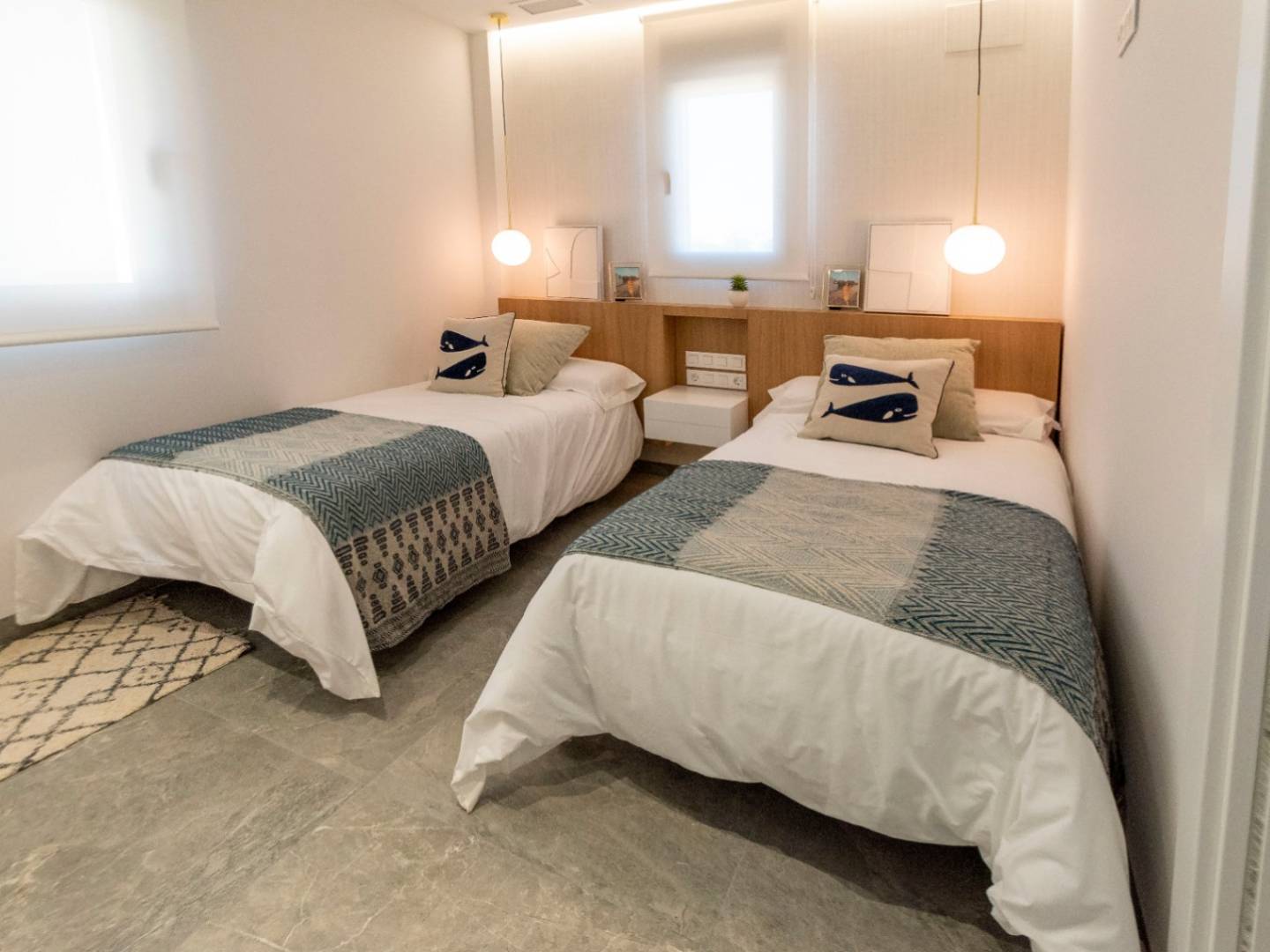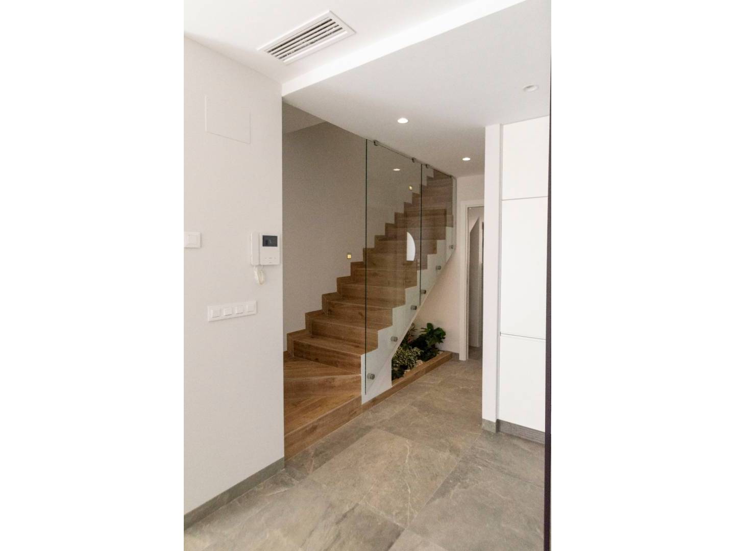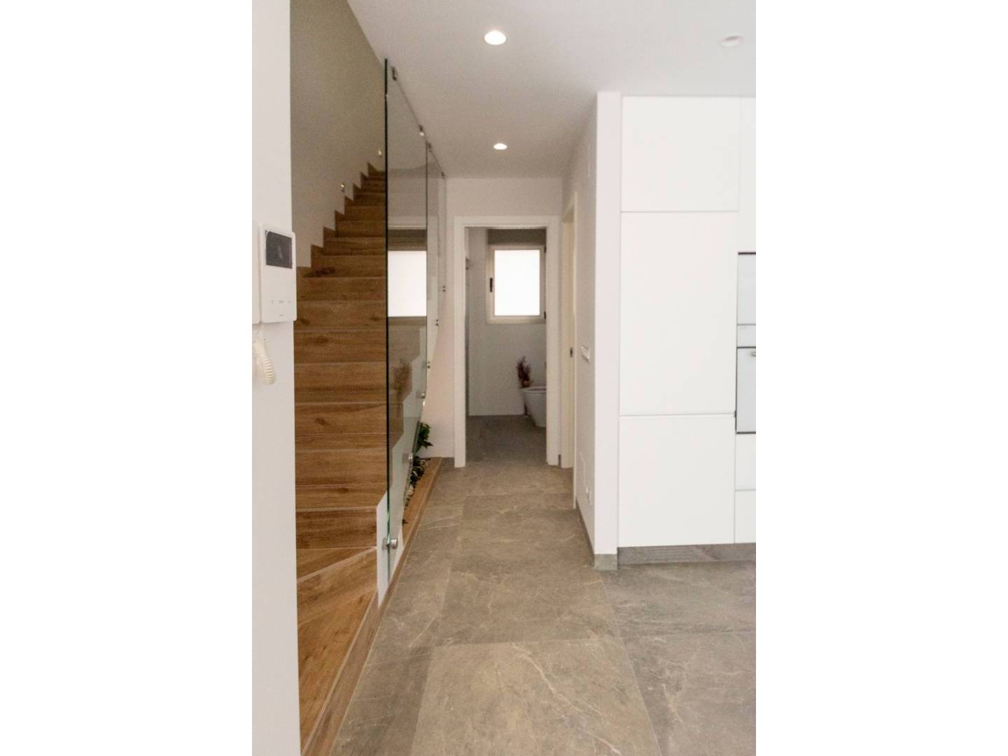 Fantástica Villa en venta situada en Lo Romero Golf, Pilar de la Horadada. En el centro del Club Lo Romero Golf se sitúa este residencial privado, con piscina comunitaria y con vistas al campo de Golf y su entorno idílico. A 7km del puerto marítimo y de las mejores playas de Torre de la Horadada como la playa de los Jesuitas, conocida por su gran dimensión, sus aguas limpias y arena blanca, además que en ella es muy habitual practicar deportes como el volley-ball, balonmano, surf, etc. También encontraras bonitas calas donde podrás bucear y conocer la fauna marina de primera mano. Villa de dos plantas de 127.44m² que se distribuye en un amplio salón comedor unido a una cocina americana con barra desayunadora en península, también consta de dos amplias terrazas y una piscina. Tres dormitorios dobles dos de ellos en suite con baño incorporado y un baño independiente. La vivienda ha sido diseñada y construida con las mejores calidades del mercado y un estilo contemporáneo, bastante luminoso, con ventanas en todas las orientaciones. En la tercera planta cuenta con un solárium de 54.00m² donde disfrutar de las vistas y de los días soleados que ofrece el mediterráneo.