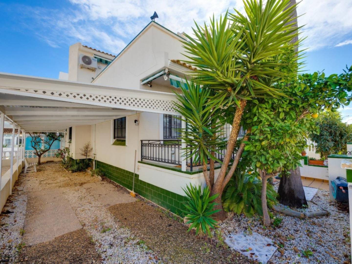 Una Casa en Playa Flamenca Ubicada en la hermosa región de Playa Flamenca, en Orihuela, esta encantadora casa es el refugio perfecto para quienes buscan un equilibrio entre confort y estilo de vida mediterráneo. Con una superficie construida de 100 m², esta propiedad se presenta en un estado óptimo, lista para ser habitada y disfrutar de cada rincón. Distribución Ideal La vivienda dispone de tres amplios dormitorios y dos baños, proporcionando un ambiente acogedor y funcional para familias o aquellos que deseen recibir a sus visitantes con comodidad. La distribución abierta de la casa crea una sensación de amplitud, invitando a iluminar cada espacio con la luz natural que inunda los interiores. Comodidades Modernas La casa cuenta con aire acondicionado y calefacción tipo split, asegurando un ambiente fresco durante los calurosos días de verano y cálido en invierno. La moderna cocina americana, equipada y totalmente amueblada, es perfecta para disfrutar de momentos culinarios con familia y amigos. Los detalles como el doble acristalamiento y la puerta de seguridad garantizan tranquilidad y bienestar en el hogar. Exterior y Espacios Comunes El acceso a la piscina comunitaria añade un tono relajante a la vida en esta vivienda, siendo el lugar ideal para refrescarse y compartir momentos de diversión bajo el sol. La orientación sur de la propiedad no solo permite disfrutar de agradables vistas, sino que también maximiza la exposición solar durante todo el día. Conexiones y Accesibilidad La ubicación de la casa en una zona con excelentes comunicaciones facilita el acceso a diversos servicios y atractivos locales. Playa Flamenca, conocida por sus hermosas playas y vibrante ambiente, ofrece una variedad de opciones de entretenimiento, restauración y actividades al aire libre, todo a su alcance. Este hogar no es solo un lugar para vivir, sino un estilo de vida que invita a disfrutar de la calidez del clima alicantino y la belleza del entorno. Con su perfecto equilibrio entre comodidad, espacio y ubicación, esta casa es una opción excepcional para quienes buscan su nuevo hogar en la Costa Blanca.
