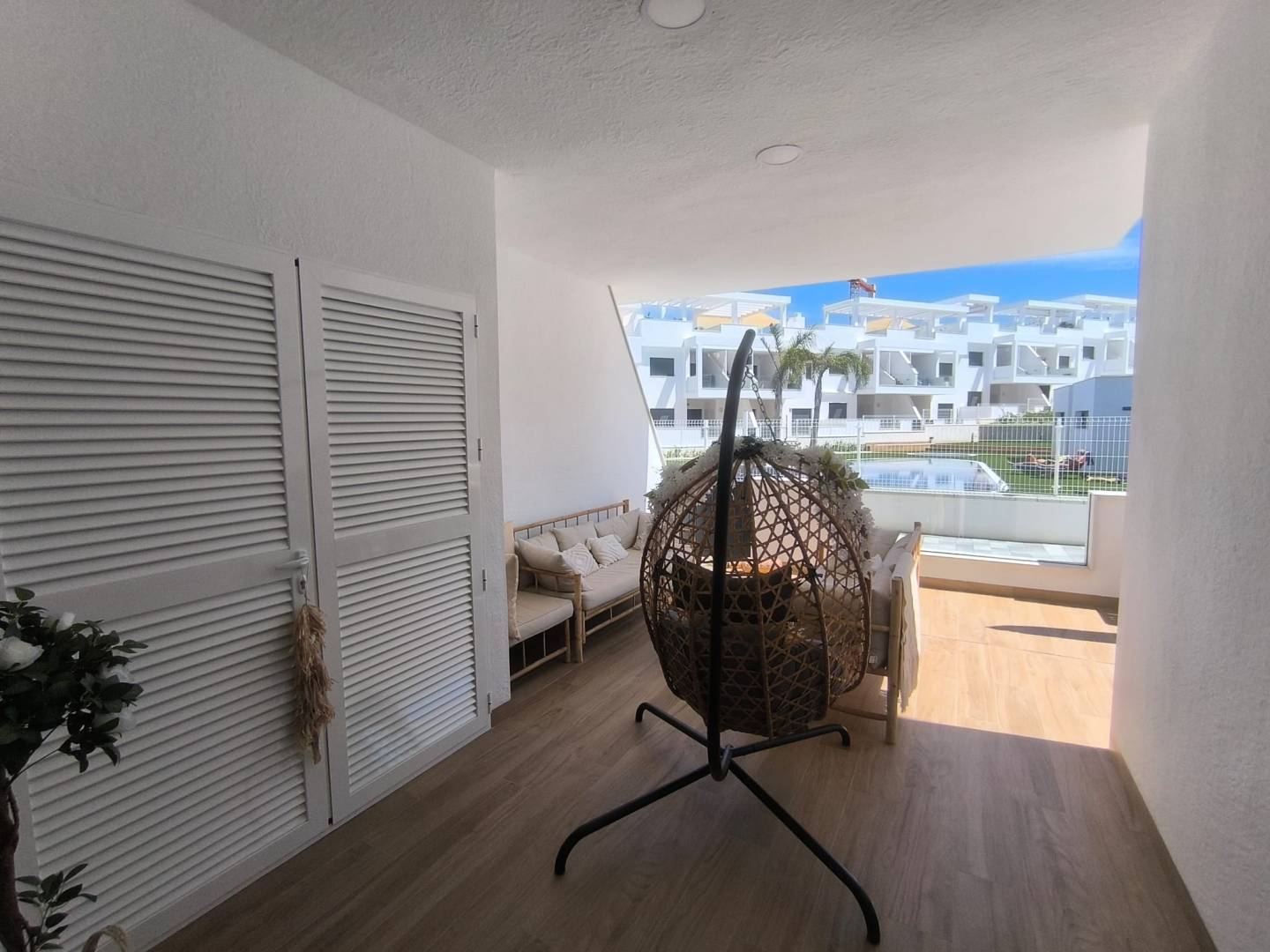 Tu Refugio Moderno en Torrevieja Ubicado en la cotizada zona de Los Balcones en Torrevieja, este bungalow contemporáneo destaca por su diseño moderno y acogedor, creando un ambiente ideal para disfrutar de la vida mediterránea. Su orientación suroeste permite que la luz natural inunde cada rincón, convirtiendo el espacio en un refugio cálido y luminoso. Distribución Funcional Con un total de 131 m² construidos, esta vivienda cuenta con dos cómodas habitaciones y dos baños, proporcionando el espacio necesario para la tranquilidad y el descanso. La distribución abierta, que incluye una cocina estilo americana, promueve la interacción y el disfrute de momentos compartidos. Cada detalle ha sido pensado para ofrecer funcionalidad sin sacrificar estilo. Características Confortables Este bungalow está equipado con aire acondicionado y calefacción por conductos, permitiendo un clima agradable durante todo el año. La inclusión de ventanas de doble acristalamiento y puerta de seguridad refuerza tanto la eficiencia energética como la seguridad en el hogar. Además, se ofrece completamente amueblado, facilitando una mudanza instantánea. Vida al Aire Libre Para aquellos que valoran la vida al aire libre, la propiedad ofrece acceso a una piscina comunitaria, ideal para disfrutar de los cálidos días de verano en compañía de amigos y familiares. Además, la vivienda cuenta con una terraza abierta perfecta para relajarse o disfrutar de una comida al aire libre. Conectividad y Accesibilidad Situada en una zona con excelentes comunicaciones, el bungalow se encuentra a pocos minutos de las playas de Torrevieja, así como de una variedad de servicios incluidos supermercados, restaurantes y centros de ocio. La ubicación es perfecta para aquellos que buscan disfrutar tanto del bullicio de la ciudad como de la paz que ofrece esta residencial zona. Un Hogar con Potencial Con todas estas características y su inmejorable localización, este bungalow no solo resulta ser un hogar perfecto, sino también una inversión con mucho potencial. La mezcla ideal de modernidad, comodidad y accesibilidad hace de esta propiedad una oportunidad única en Torrevieja.