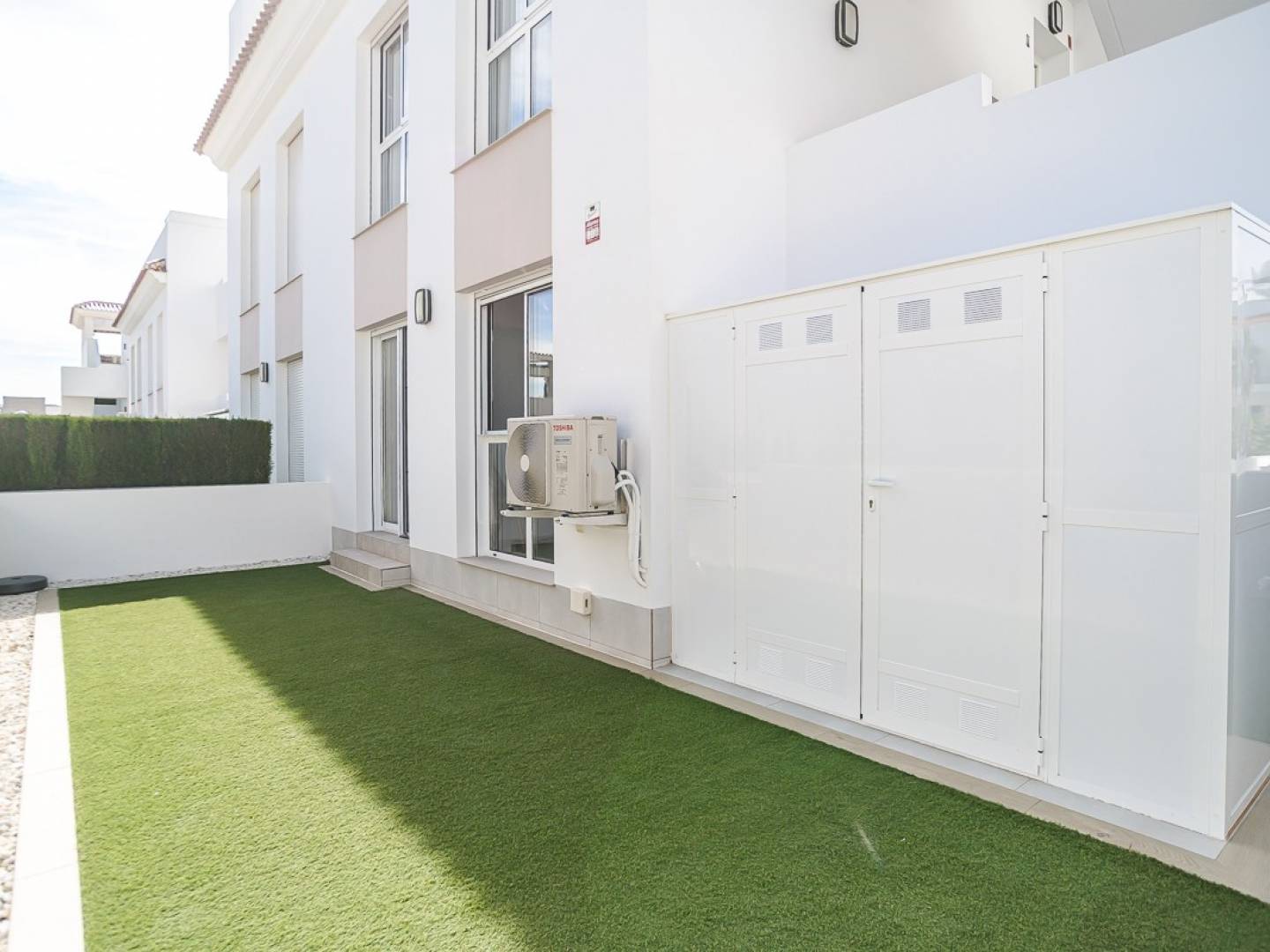 ¿Buscas un lugar soleado donde puedas mudarte de inmediato? Entonces, este apartamento en planta baja en Doña Pepa, Ciudad Quesada, podría ser perfecto. El apartamento está impecablemente mantenido y se encuentra en un barrio tranquilo y agradable, pero cerca de todo lo necesario. El aeropuerto de Alicante está a poca distancia, y las playas, campos de golf, tiendas y restaurantes también son fácilmente accesibles. En el interior, encontrará dos amplios dormitorios con armarios empotrados y dos modernos baños. El luminoso y abierto salón se integra a la perfección con la cocina totalmente equipada. Desde el salón, podrá acceder directamente a la amplia terraza privada, perfecta para tomar un café al sol de la mañana, disfrutar de una acogedora barbacoa o simplemente del aire libre. En la parte trasera, hay una terraza adicional donde podrá disfrutar del sol de la mañana con total privacidad. La piscina comunitaria se encuentra en la enorme terraza, enclavada en los hermosos jardines del complejo. También dispone de una plaza de aparcamiento privado en una zona cerrada, lo que le proporciona un toque extra de comodidad y seguridad. El almacenamiento exterior adicional ofrece amplio espacio para bicicletas, artículos de playa o herramientas. Gracias a su favorable orientación, podrá disfrutar del sol desde la mañana hasta la noche. La urbanización está bien cuidada y es agradable, con hermosas zonas verdes y una amplia piscina. Hay tiendas y restaurantes a poca distancia, incluyendo el supermercado Consum para todas sus compras. Los amantes del golf también están en el lugar ideal: varios campos de golf de primer nivel están a solo 15 minutos. Y, por supuesto, hay playas, rutas de senderismo e instalaciones deportivas cerca. Este apartamento se vende parcialmente amueblado. Es ideal como residencia permanente, casa de vacaciones o inversión. En resumen: esto no es solo un apartamento; es un lugar donde realmente puedes disfrutar de la vida en España. ¿Te imaginas viviendo aquí? Contáctanos para programar una visita y descubrirlo por ti mismo.