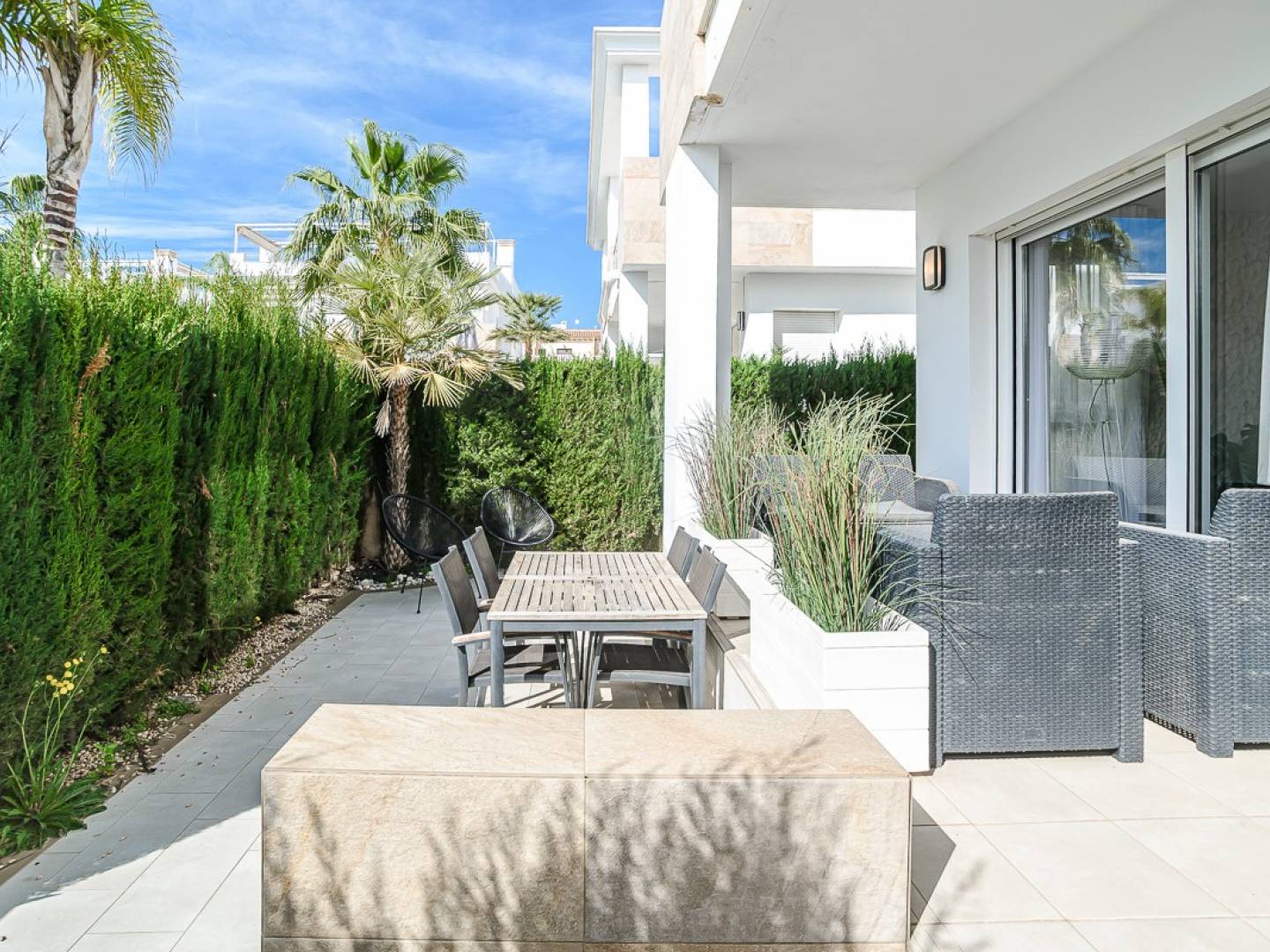 Villa exclusiva en Ciudad Quesada: vida moderna en una ubicación privilegiada Me complace presentar esta excepcional villa adosada ubicada en el codiciado complejo Euromarina, en pleno corazón de Ciudad Quesada. Construida en 2019, esta propiedad combina un diseño contemporáneo, acabados de alta calidad y el relajado estilo de vida mediterráneo que hace que la Costa Blanca sea tan atractiva. Diseñado para la comodidad y la vida fácil Con 134 m² de espacio construido, la distribución ha sido cuidadosamente planificada para ofrecer comodidad y practicidad: ideal como vivienda permanente, una escapada de vacaciones o una inversión. La propiedad cuenta con: Tres habitaciones espaciosas, todas luminosas y bien proporcionadas con excelente espacio de almacenamiento. Tres baños modernos, incluido un elegante baño en suite. Una sala de estar luminosa y acogedora, perfecta tanto para relajarse como para entretenerse. Una elegante cocina abierta, totalmente equipada y diseñada teniendo en cuenta tanto la funcionalidad como la elegancia. Una generosa terraza en la azotea, ideal para disfrutar del sol mediterráneo, comidas al aire libre y vistas abiertas. Aire acondicionado central en toda la casa para mayor comodidad durante todo el año. Espacios al aire libre y servicios comunitarios La propiedad se beneficia de áreas comunes bellamente mantenidas que realmente mejoran la experiencia de vida: Jardines paisajísticos y zonas verdes Una gran piscina comunitaria con duchas al aire libre. Aparcamiento privado en la parcela Amplio espacio de almacenamiento tanto dentro como fuera de la casa. Una ubicación que lo ofrece todo Ciudad Quesada sigue siendo una de las zonas más codiciadas de la Costa Blanca gracias a su vibrante ambiente y excelente infraestructura. Tiendas, restaurantes, cafeterías y centros médicos se encuentran a poca distancia a pie. Impresionantes playas y reconocidos campos de golf se encuentran a poca distancia en coche, mientras que el aeropuerto de Alicante está a unos 40 minutos. Esta propiedad ofrece el equilibrio perfecto entre comodidad moderna, vida al aire libre y ubicación privilegiada. Para obtener más información o concertar una visita, no dude en ponerse en contacto con nosotros: esto podría ser exactamente lo que ha estado buscando.