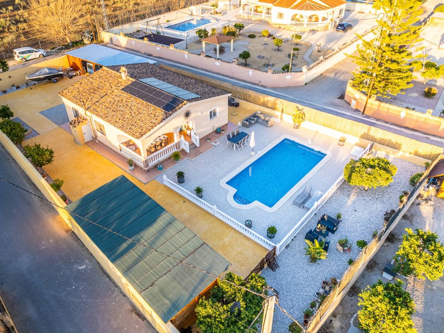 Descubra esta maravillosa villa situada en el encantador municipio de Catral, en plena provincia de Alicante, un enclave privilegiado de la Costa Blanca donde el sol brilla todo el año. Esta propiedad totalmente renovada destaca por sus acabados excepcionales y la cuidada selección de materiales de primera calidad, ofreciendo un equilibrio perfecto entre diseño, confort y exclusividad. La vivienda dispone de 3 amplios dormitorios y 2 elegantes baños, diseñados con atención minuciosa al detalle. Gracias a la calefacción central y al aire acondicionado, garantiza una temperatura ideal en cualquier estación. En el exterior, la propiedad invita a disfrutar del auténtico estilo de vida mediterráneo con una piscina privada, cocina exterior totalmente equipada, caseta de piscina y una amplia terraza cubierta, perfecta para reuniones y largas veladas al aire libre. El cuidado jardín con limoneros y naranjos aporta carácter y encanto, mientras que los muros elevados aseguran máxima privacidad sin renunciar a la cercanía del centro del municipio. Además, cuenta con cochera para 2-3 coches, portón eléctrico, paneles solares que mejoran la eficiencia energética. Una villa lista para entrar a vivir, ideal para quienes buscan diseño, calidad y privacidad bajo el sol español. Descubra una oportunidad única: propiedades de este nivel en Catral son realmente escasas y altamente demandadas.