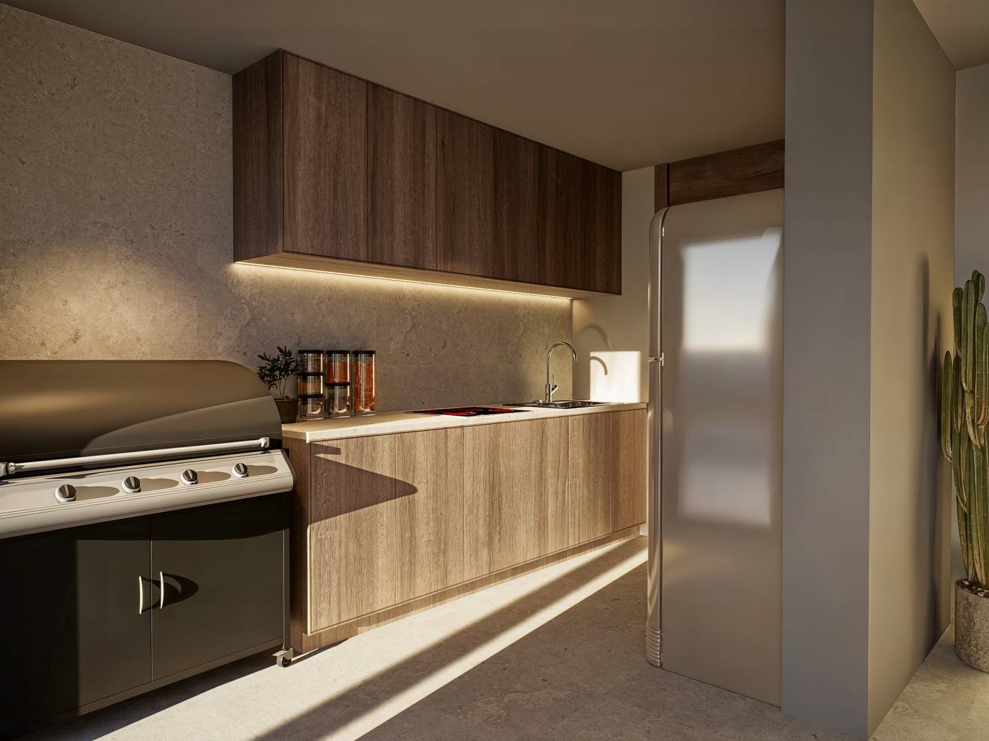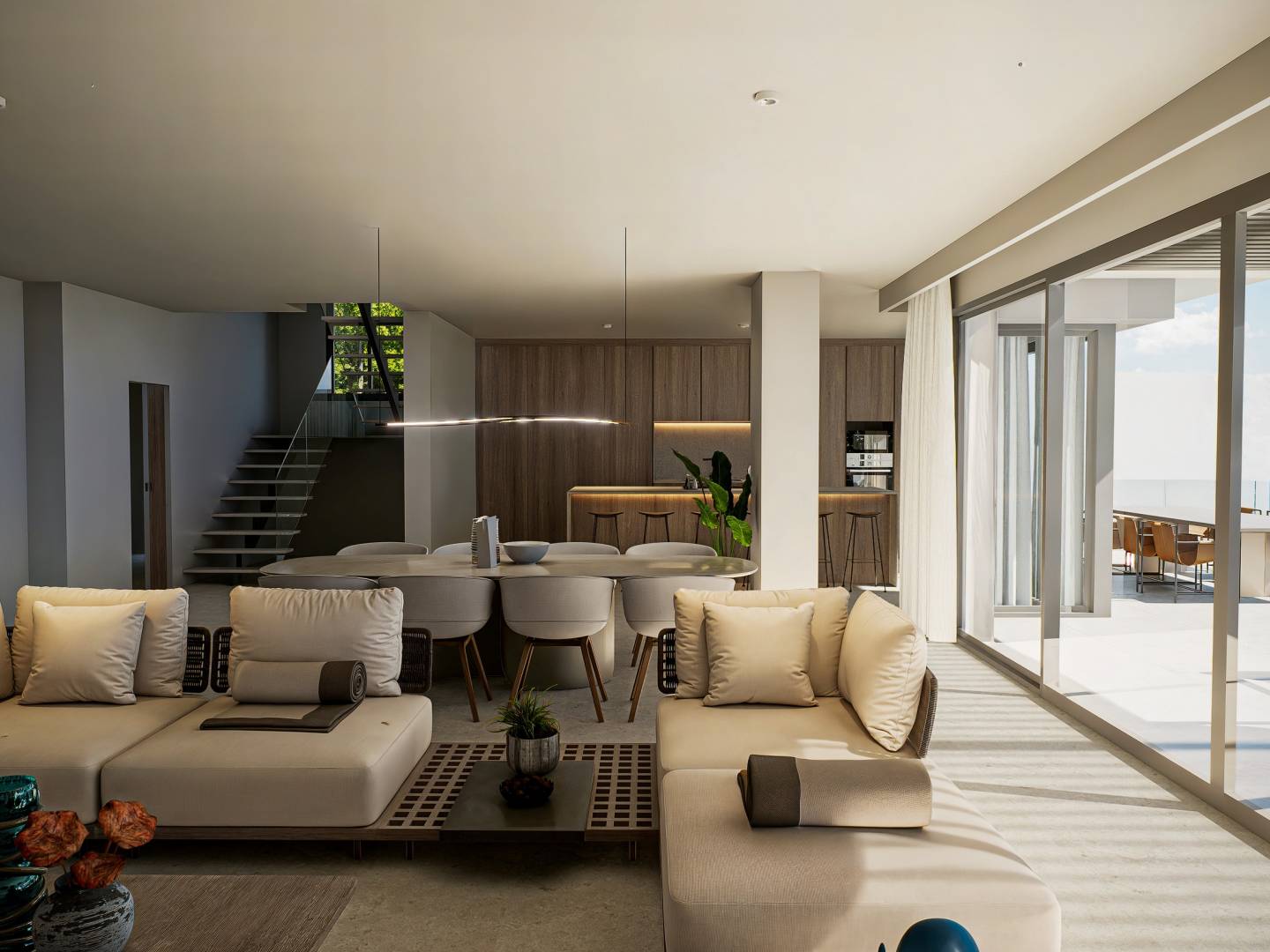 El interior de la villa está diseñado con materiales de alta calidad, como suelos de gres porcelánico, que aportan un toque moderno y elegante. La vivienda cuenta con cuatro dormitorios, todos ellos con armarios empotrados, lo que ofrece un amplio espacio de almacenamiento. Los cuatro baños están equipados con acabados modernos. La cocina está equipada con electrodomésticos de última generación, y el sistema de aire acondicionado garantiza el confort en todas las estaciones. Además, la villa dispone de un videoportero para mayor seguridad y comodidad.