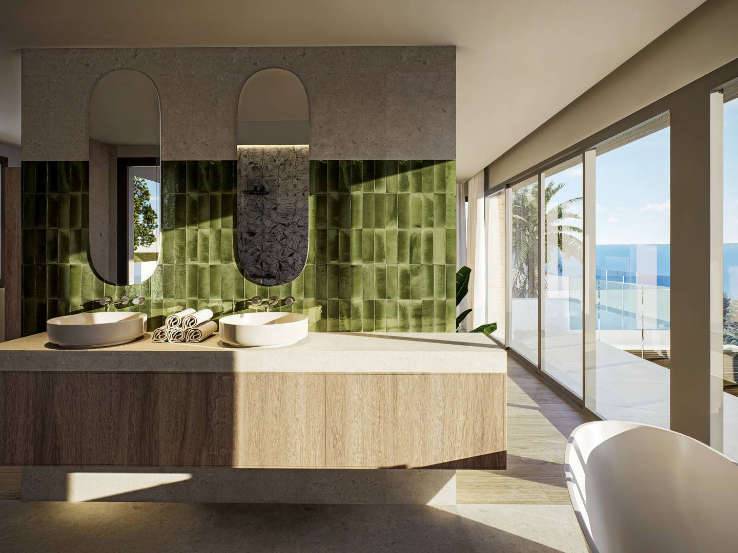 El exterior de la villa está diseñado para maximizar el disfrute del clima mediterráneo. Cuenta con un jardín privado que ofrece un espacio verde perfecto para el relax o para actividades al aire libre. La terraza es un lugar ideal para disfrutar de las vistas al mar y de las puestas de sol. Además, la villa dispone de un solárium, perfecto para tomar el sol en total privacidad. La piscina privada es otro de los atractivos de esta propiedad, proporcionando un espacio refrescante para los días más calurosos.