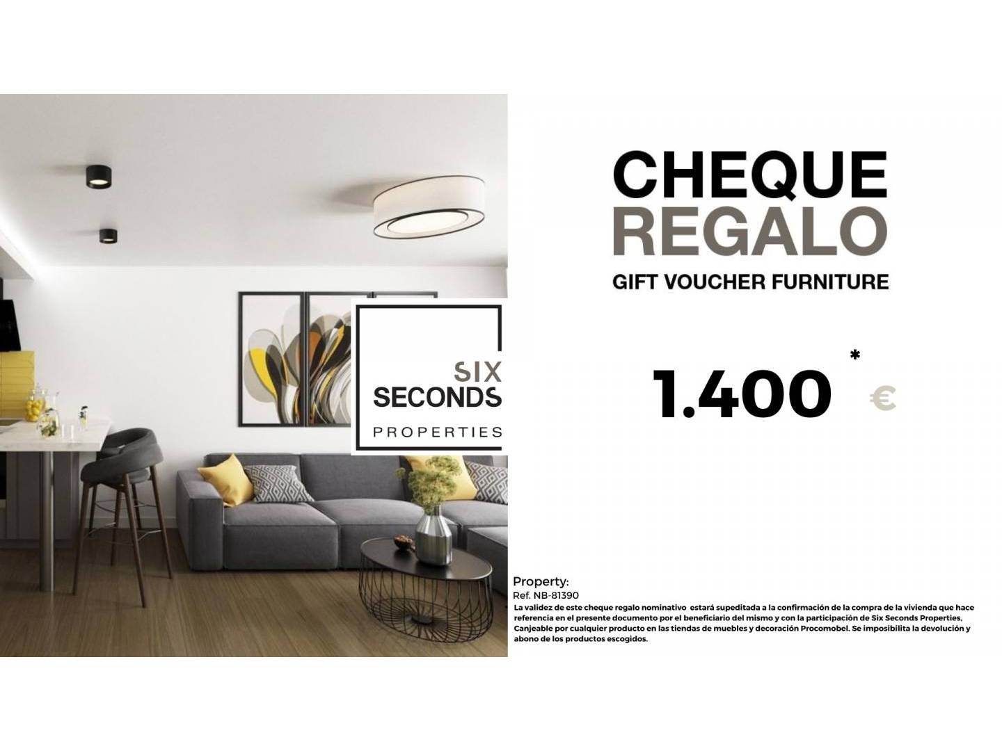 En Six Seconds Properties te ayudamos a convertir tu nueva propiedad en la casa de tus sueños, regalándote un cheque regalo de 1.400€ en mobiliario y una visita técnica de la vivienda, donde nuestro equipo técnico te aconsejará sobre las posibilidades de mejora de la vivienda. Totalmente gratis!!