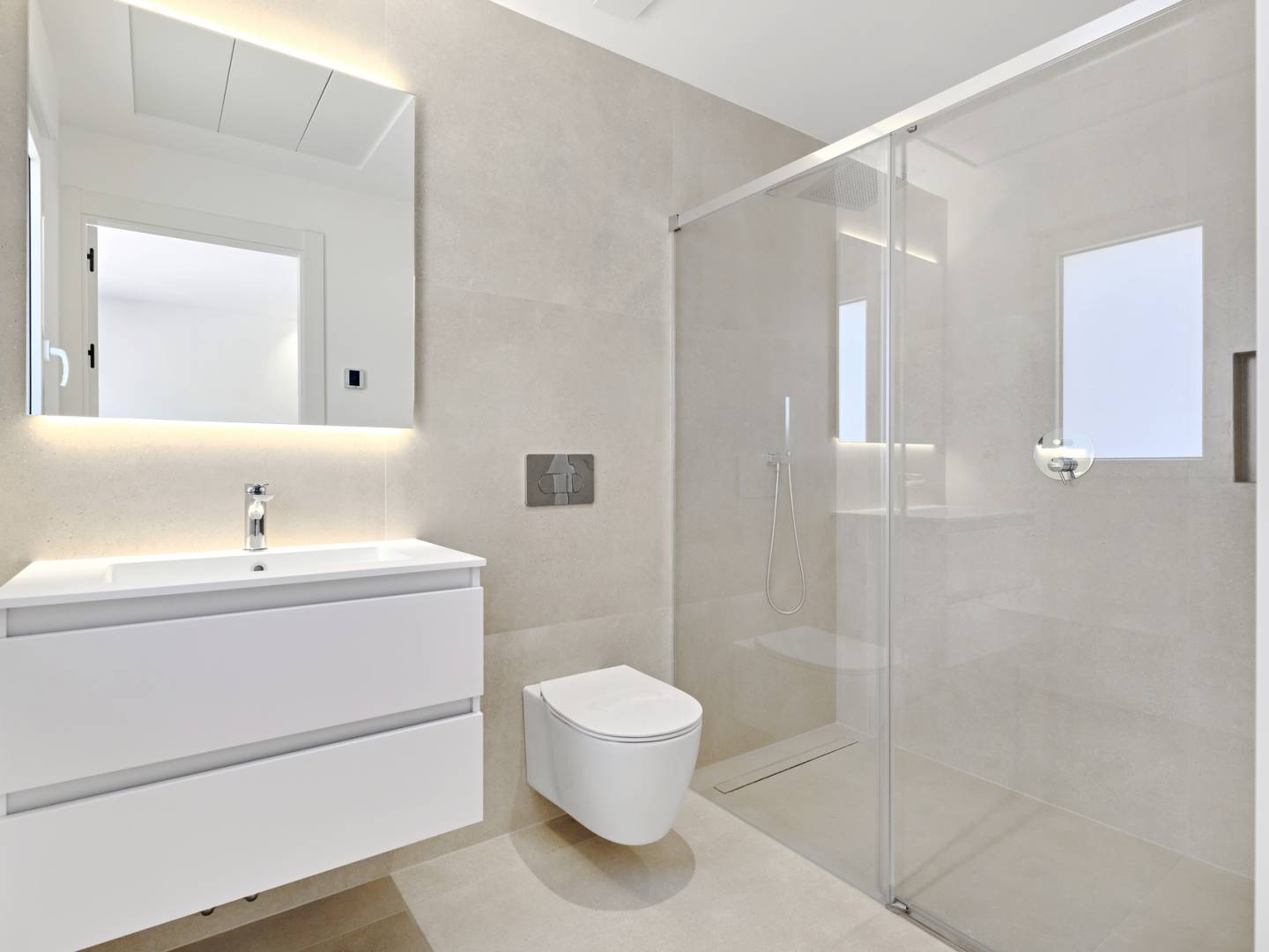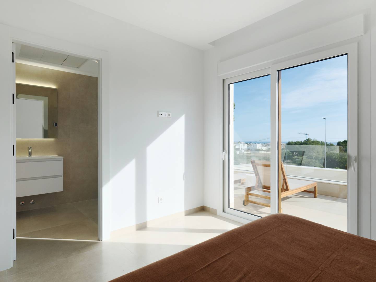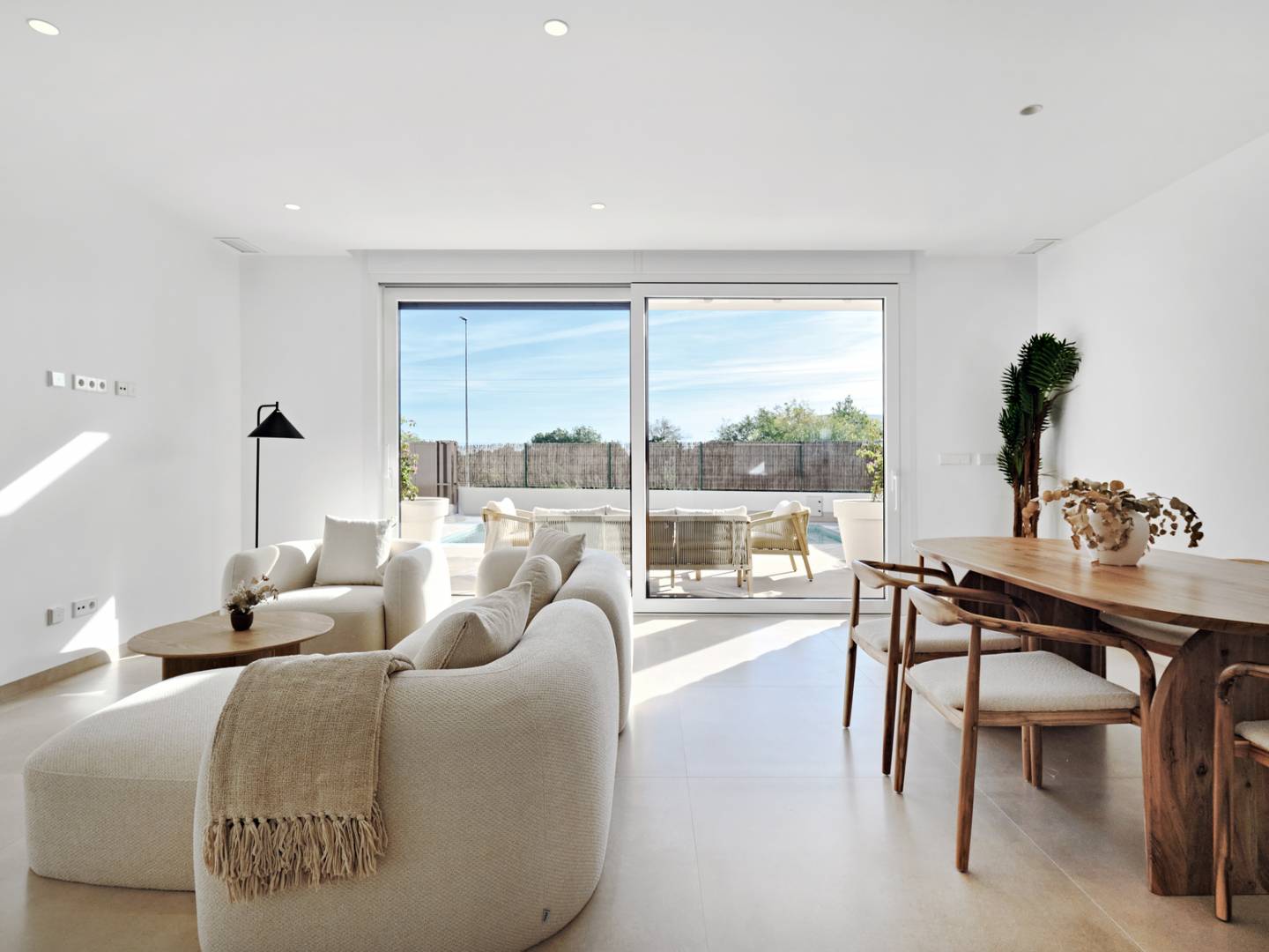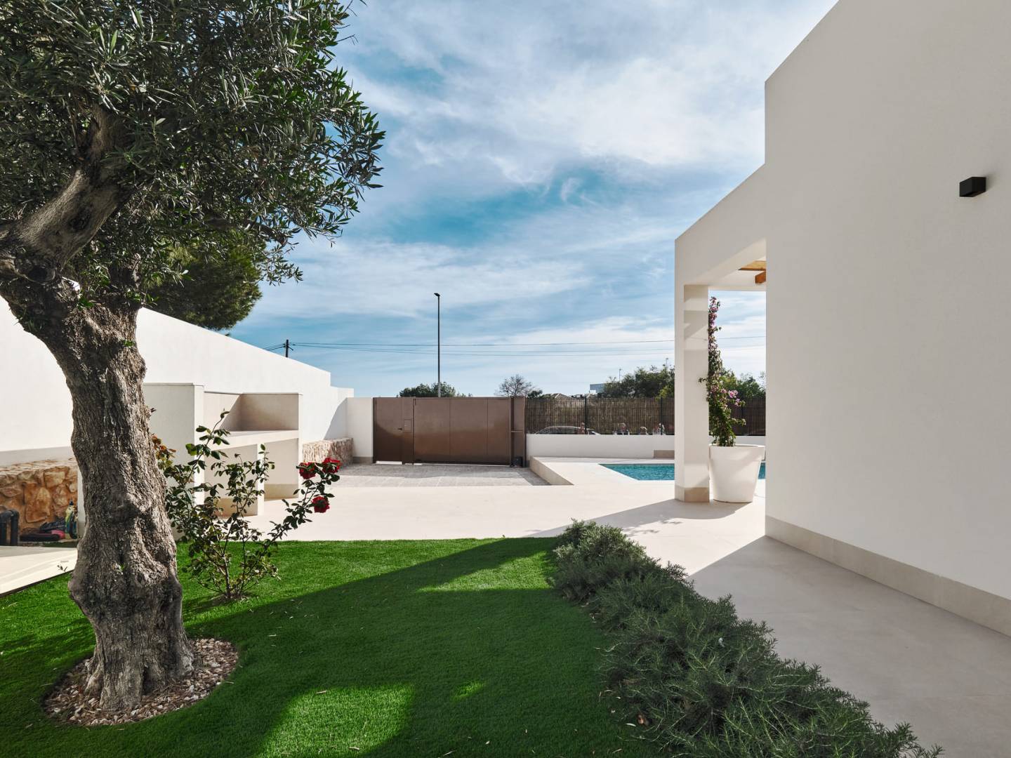 El interior del chalet está diseñado para ofrecer el máximo confort. Dispone de tres dormitorios, lo que lo hace perfecto para familias o para recibir invitados. Los dos baños están equipados con acabados modernos. La cocina está equipada con electrodomésticos de alta calidad, facilitando las tareas diarias. El sistema de aire acondicionado garantiza una temperatura agradable durante todo el año. Los suelos de gres porcelánico aportan un toque elegante y son fáciles de mantener. Además, cuenta con armarios empotrados que optimizan el espacio de almacenamiento. La seguridad está reforzada con un videoportero, proporcionando tranquilidad a sus residentes.