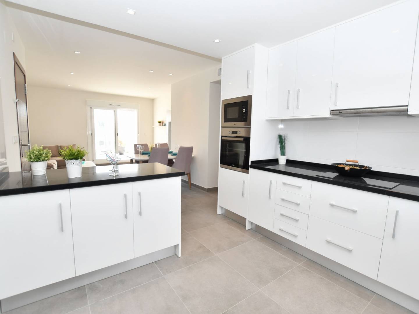 Los exteriores de estas viviendas están pensados para maximizar el disfrute del clima mediterráneo. Cada bungalow cuenta con un jardín privado, ideal para relajarse o disfrutar de actividades al aire libre. Además, las propiedades incluyen una terraza, perfecta para cenas al aire libre o simplemente para disfrutar de las vistas al mar. La presencia de un solárium privado en cada vivienda ofrece un espacio adicional para tomar el sol en total privacidad, convirtiéndose en un lugar privilegiado para disfrutar de las vistas panorámicas de la zona.