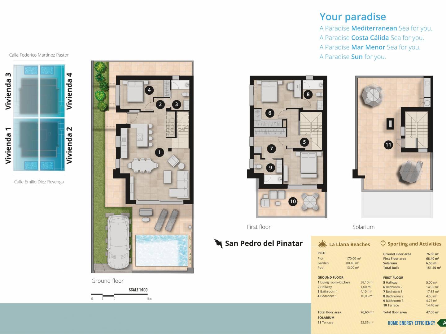 Ubicadas en la encantadora localidad de San Pedro del Pinatar, estas viviendas independientes ofrecen un entorno ideal para quienes buscan proximidad al mar, a tan solo 1 km de distancia. Con un total de cuatro propiedades disponibles, cada una está diseñada para proporcionar el máximo confort y funcionalidad. La tipología de las viviendas es "Independiente", lo que garantiza privacidad y exclusividad en un entorno privilegiado.