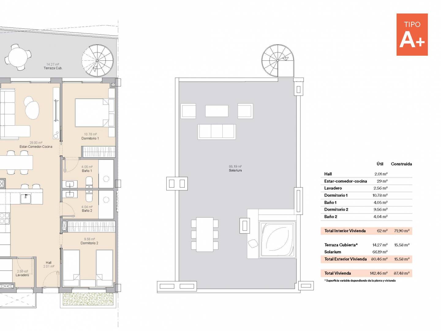 El interior de las viviendas está diseñado para ofrecer el máximo confort y funcionalidad. Los suelos de gres porcelánico aportan un toque de elegancia y son fáciles de mantener. Todas las propiedades están equipadas con aire acondicionado, asegurando un ambiente agradable durante todo el año. La inclusión de electrodomésticos modernos facilita la vida diaria, mientras que los armarios empotrados ofrecen un almacenamiento eficiente y ordenado. La distribución de las viviendas está pensada para optimizar el espacio, con amplias áreas de estar que se integran perfectamente con las terrazas, creando un flujo continuo entre el interior y el exterior.