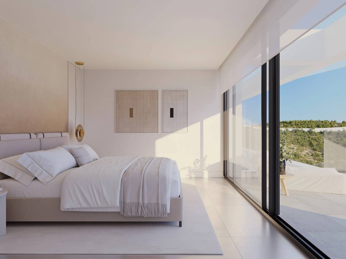 El interior de la villa está equipado con características de alta gama que garantizan un estilo de vida moderno y confortable. Con un total de 4 dormitorios y 5 baños, la distribución está pensada para ofrecer amplitud y privacidad. Los suelos de gres porcelánico aportan un toque de elegancia y durabilidad. La villa está equipada con electrodomésticos de última generación y un sistema de domótica que facilita el control de diversas funciones del hogar. Las persianas eléctricas y el videoportero añaden un nivel extra de comodidad y seguridad. Además, la calefacción por suelo radiante asegura un ambiente cálido y acogedor durante todo el año. Los armarios empotrados ofrecen un almacenamiento eficiente, mientras que la opción de carga para coches eléctricos refleja un compromiso con la sostenibilidad y la modernidad.