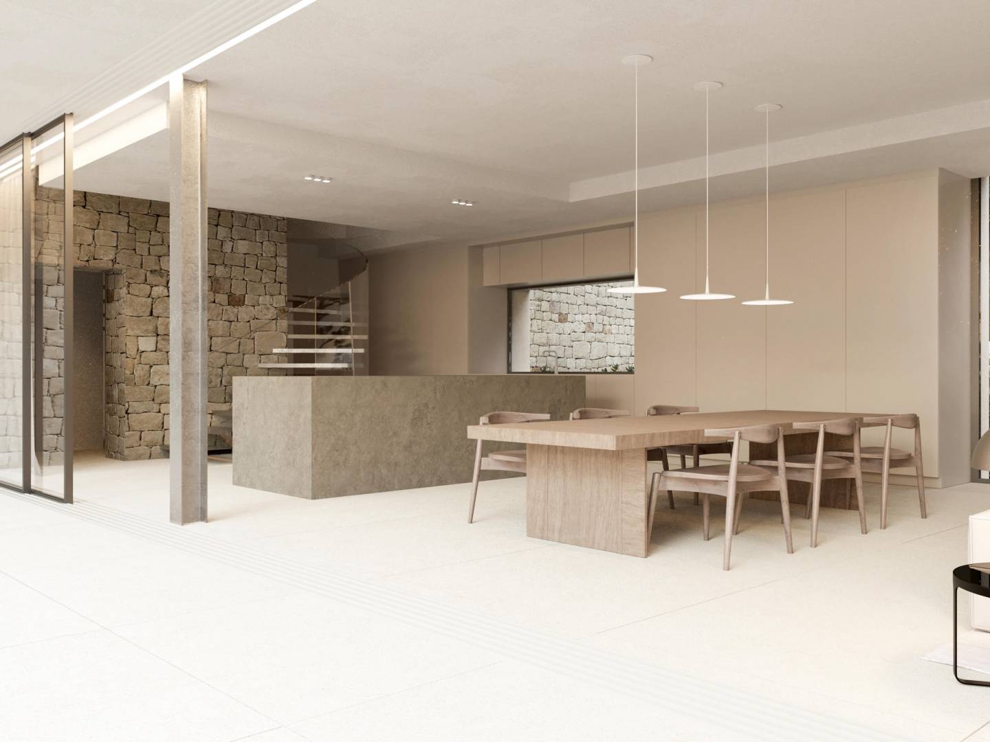 El interior de estas villas en Teulada está cuidadosamente diseñado para ofrecer el máximo confort y funcionalidad. Cada villa dispone de cuatro dormitorios y cuatro baños, proporcionando un espacio amplio y cómodo para toda la familia. Las villas están equipadas con aire acondicionado y calefacción por suelo radiante, asegurando un ambiente agradable durante todo el año. Las persianas eléctricas y los electrodomésticos de alta calidad añaden un toque de modernidad y conveniencia. Los armarios empotrados ofrecen un almacenamiento eficiente, manteniendo los espacios ordenados y despejados. Además, cada villa cuenta con un garaje privado, proporcionando seguridad y comodidad para los vehículos.