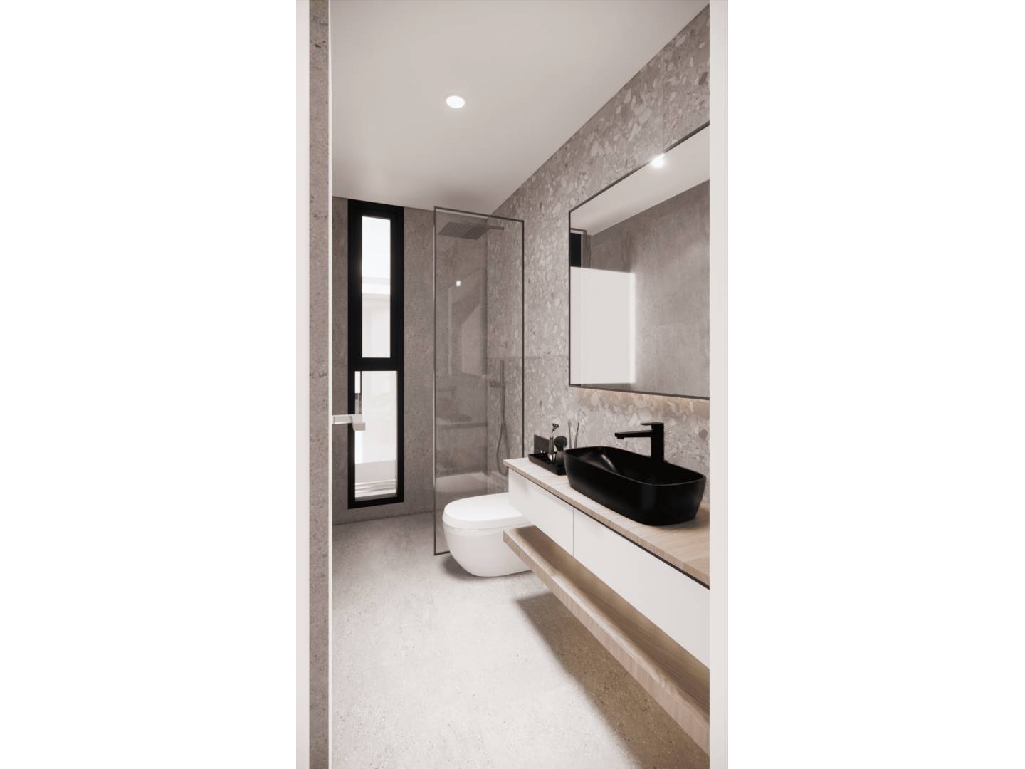 El interior de las viviendas está diseñado con un enfoque en la calidad y el confort. Los suelos de cerámica aportan un toque moderno y son fáciles de mantener, mientras que las persianas eléctricas ofrecen comodidad y control de la luz natural. Las cocinas están completamente equipadas con electrodomésticos de alta gama, facilitando la preparación de comidas y el entretenimiento. Los armarios empotrados en los dormitorios proporcionan un amplio espacio de almacenamiento, manteniendo el orden y la organización. Cada vivienda cuenta con 3 baños, asegurando privacidad y comodidad para todos los residentes. El diseño interior se centra en crear un ambiente acogedor y funcional, ideal para la vida diaria.
