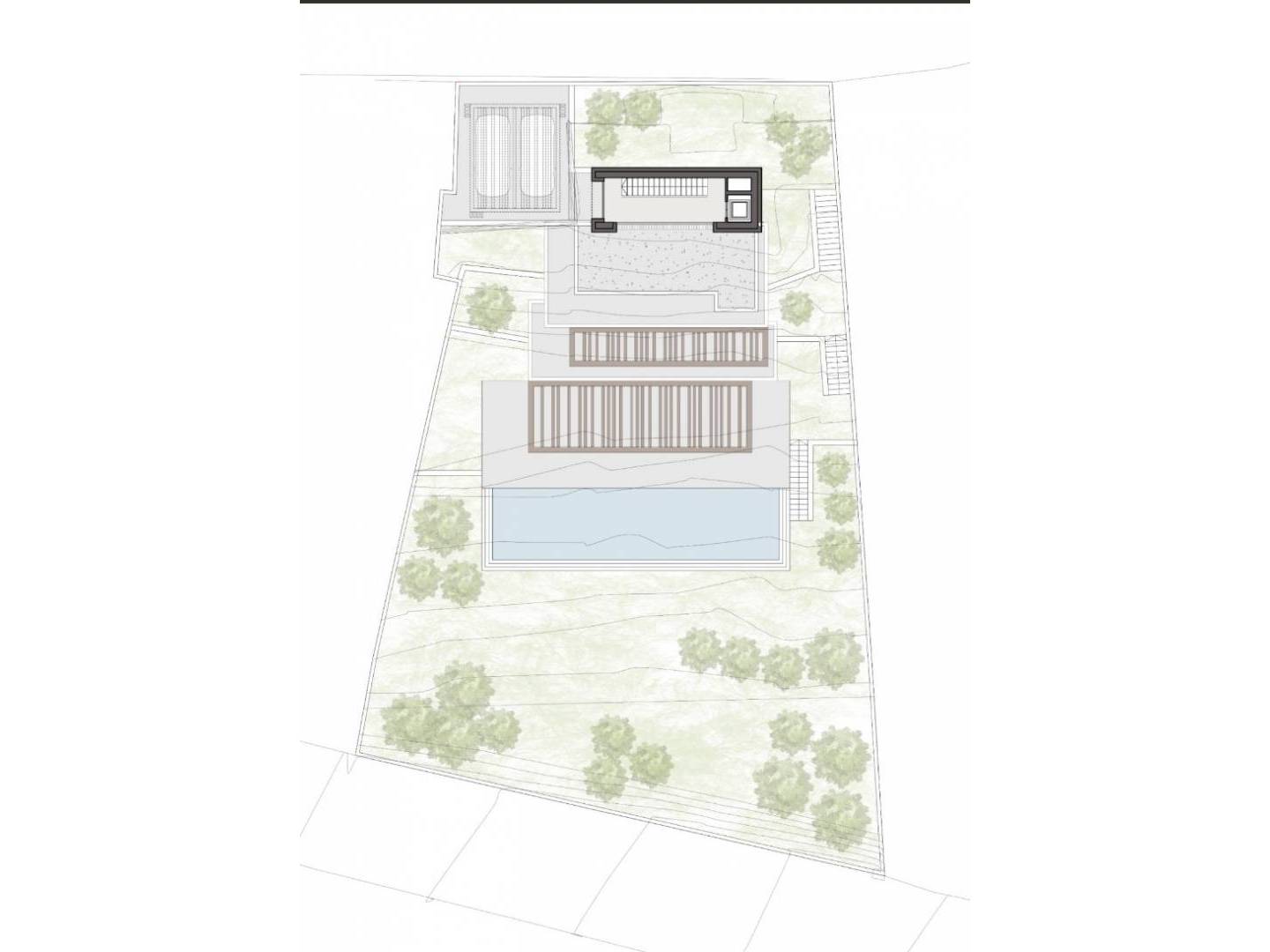 El exterior de la villa está diseñado para maximizar el disfrute del clima mediterráneo. Cuenta con un jardín privado que ofrece un oasis de tranquilidad y belleza natural. La terraza es el lugar perfecto para relajarse o entretener a los invitados, mientras que la pérgola proporciona un espacio sombreado ideal para las cálidas tardes de verano. La joya del exterior es la piscina privada, que invita a refrescarse y disfrutar del sol en un entorno exclusivo. Además, el garaje ofrece comodidad y seguridad para el estacionamiento de vehículos.