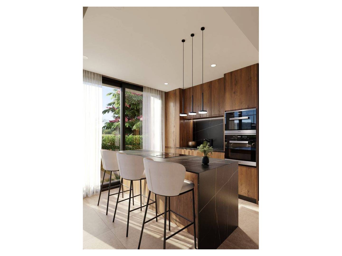 El interior de estas viviendas independientes en Cuevas del Almanzora está diseñado para ofrecer el máximo confort y funcionalidad. Los suelos de gres porcelánico aportan un toque de elegancia y son fáciles de mantener, mientras que los armarios empotrados en los dormitorios ofrecen un amplio espacio de almacenamiento. Las viviendas están equipadas con aire acondicionado y preinstalación para aire acondicionado, asegurando un ambiente agradable durante todo el año. Además, cuentan con electrodomésticos modernos y un videoportero para mayor seguridad y comodidad. Cada detalle ha sido cuidadosamente pensado para proporcionar un hogar acogedor y funcional, adaptado a las necesidades de la vida contemporánea.