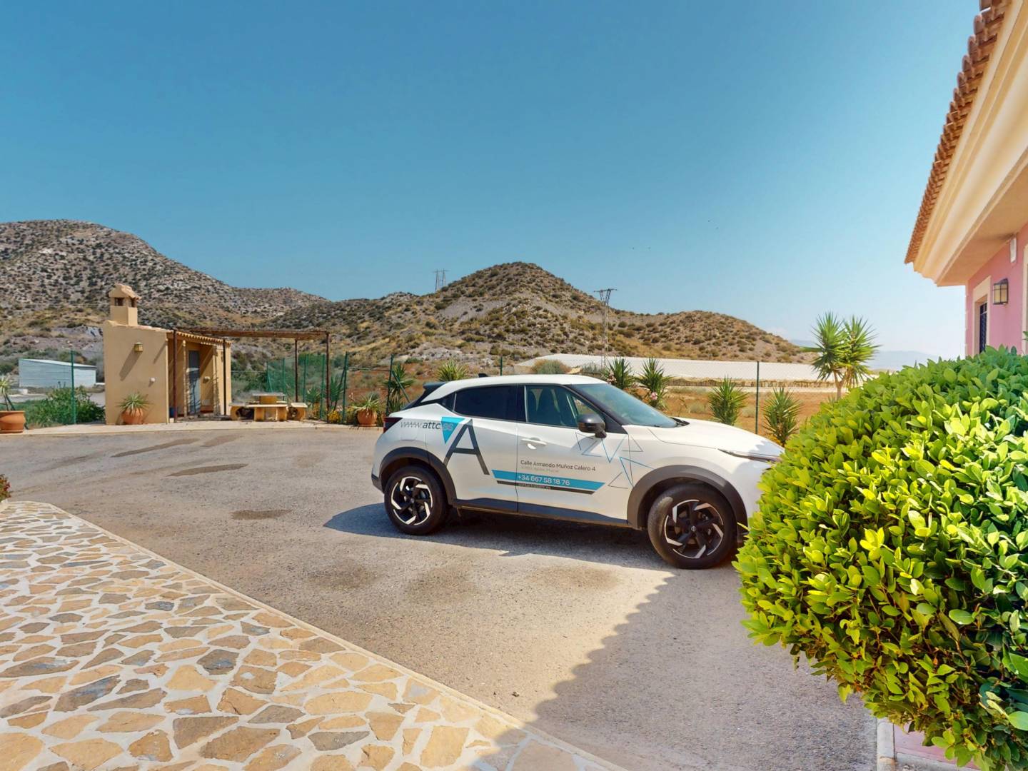 El exterior de este chalet independiente en Águilas está diseñado para maximizar el disfrute del clima mediterráneo. La propiedad cuenta con un hermoso jardín privado, perfecto para relajarse o para que los niños jueguen al aire libre. Además, dispone de una amplia terraza donde se pueden organizar reuniones familiares o simplemente disfrutar de las vistas al mar. Uno de los aspectos más destacados es la piscina privada, que ofrece un oasis de frescura durante los cálidos días de verano. El garaje privado añade comodidad y seguridad, permitiendo un acceso directo a la vivienda.
