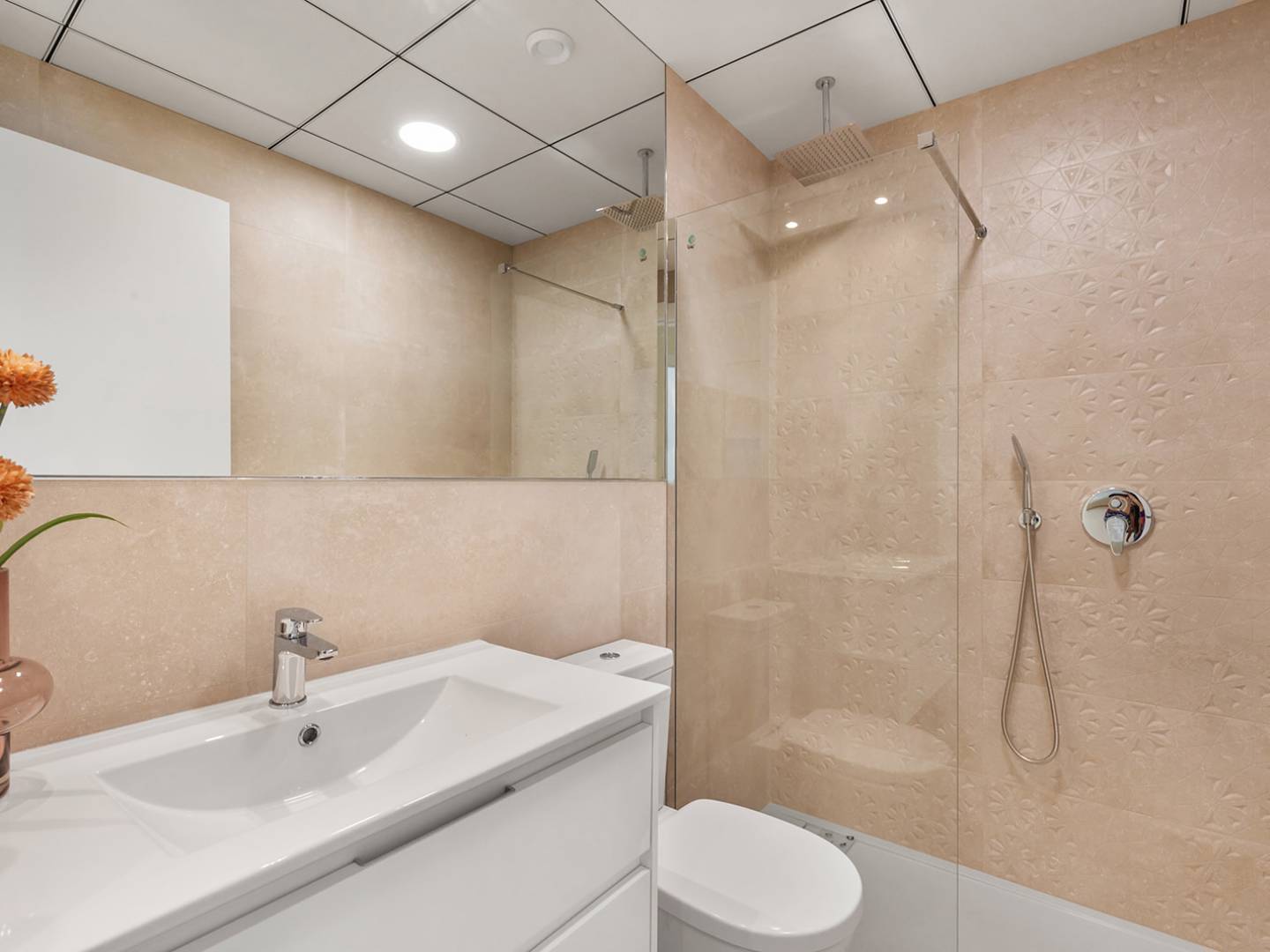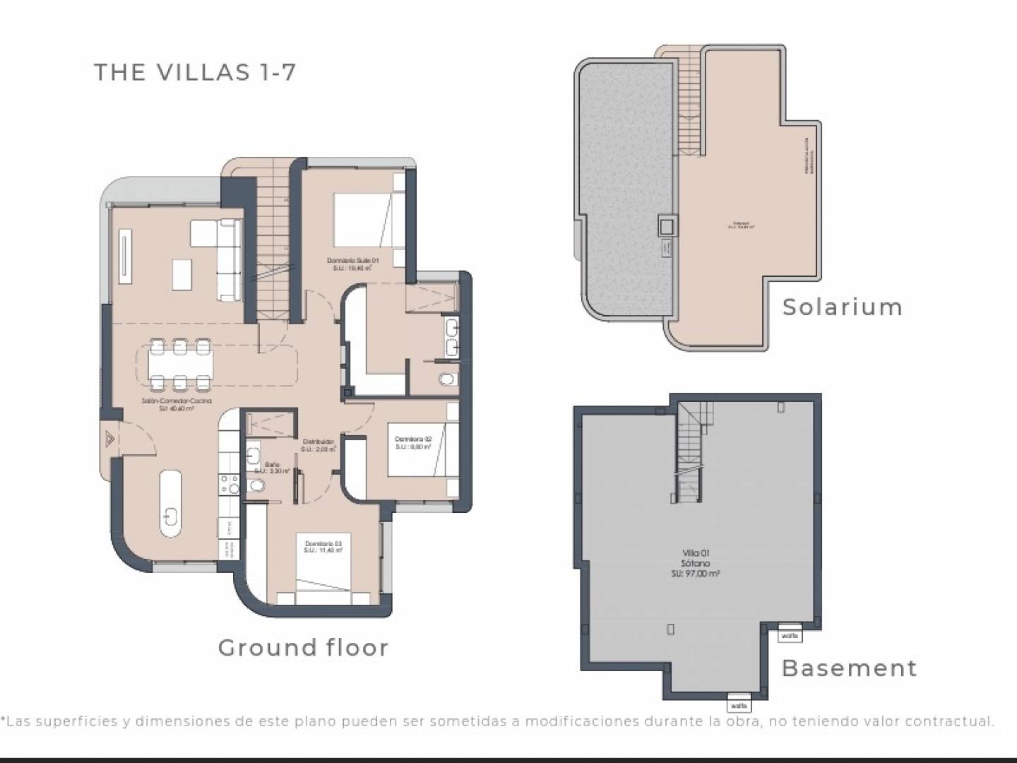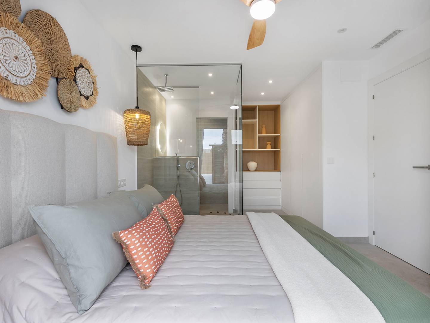El interior del chalet está equipado con suelos de gres porcelánico, que combinan durabilidad y estilo. La distribución incluye tres dormitorios y dos baños, ofreciendo un espacio amplio y cómodo para la vida diaria. Los armarios empotrados proporcionan un almacenamiento eficiente, mientras que la preinstalación de aire acondicionado asegura que el hogar se mantenga confortable durante todo el año. La cocina está equipada con electrodomésticos modernos, facilitando las tareas diarias y mejorando la experiencia culinaria.