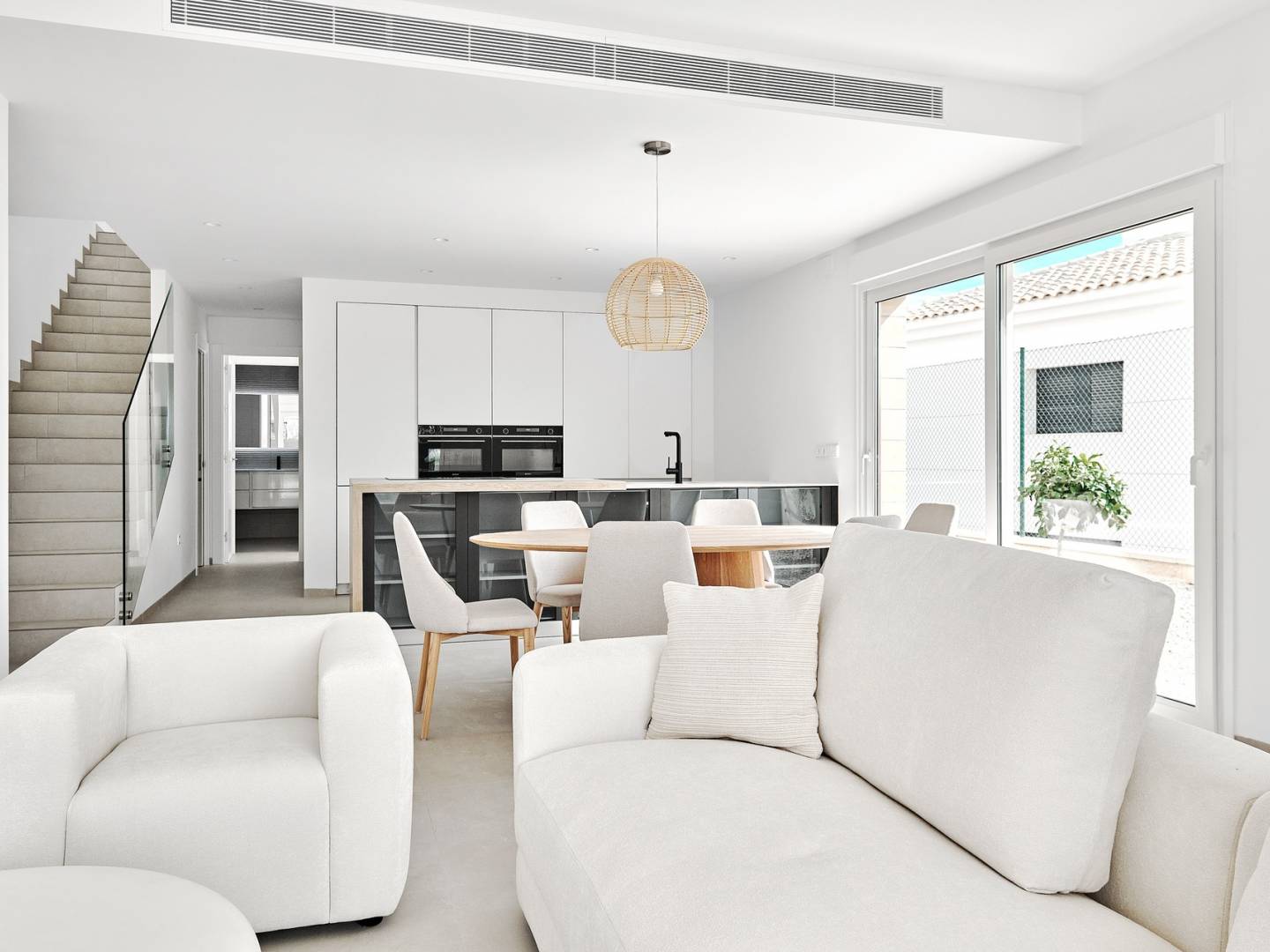 El interior de las viviendas está diseñado para ofrecer comodidad y estilo. Con opciones de 3 dormitorios y 2 o 3 baños, las propiedades se adaptan a diferentes necesidades familiares. Los suelos de cerámica aportan un toque moderno y son fáciles de mantener. Las viviendas están equipadas con aire acondicionado para asegurar el confort durante todo el año. Las persianas eléctricas y los electrodomésticos incluidos añaden un nivel extra de conveniencia. Los armarios empotrados ofrecen un almacenamiento eficiente, manteniendo los espacios ordenados y funcionales.
