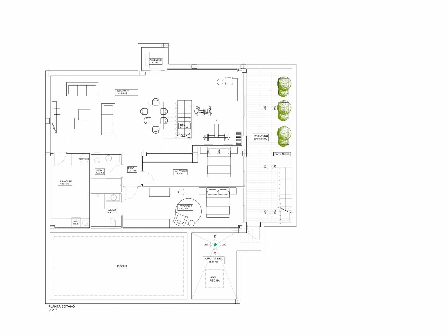 El interior de estas viviendas está diseñado para ofrecer el máximo confort y funcionalidad. Con una distribución que incluye 4 dormitorios y 5 baños, cada espacio está optimizado para el bienestar de sus residentes. Las propiedades están equipadas con aire acondicionado y preinstalación de aire acondicionado, asegurando un ambiente agradable durante todo el año. Los armarios empotrados ofrecen soluciones de almacenamiento prácticas y elegantes. Los suelos de cerámica aportan un toque moderno y son fáciles de mantener. Además, las viviendas están equipadas con electrodomésticos de alta calidad, facilitando la vida diaria y añadiendo un nivel adicional de comodidad.