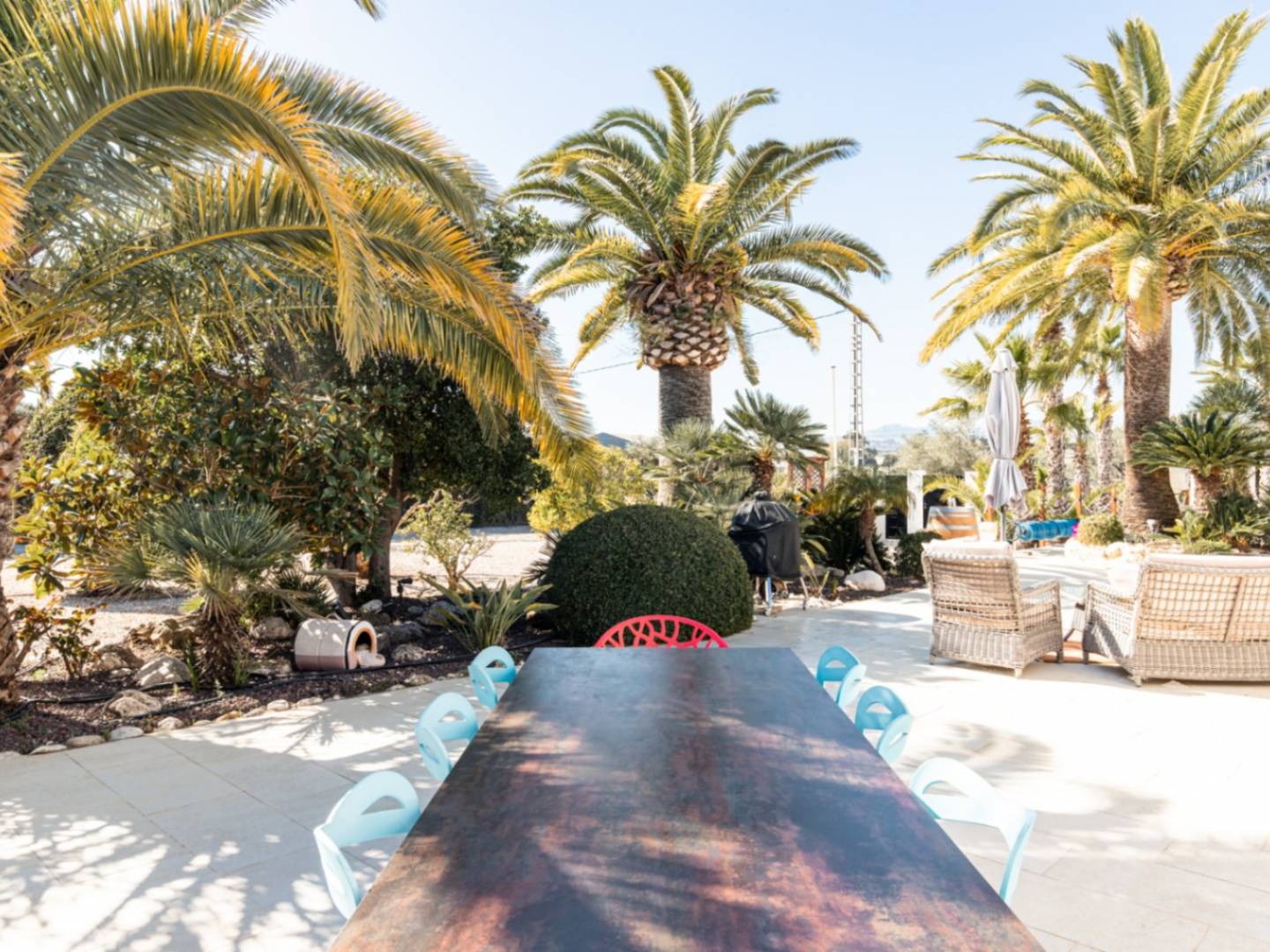 Situada a escasos minutos del centro de la ciudad y de la costa, esta impecable finca renovada representa el equilibrio perfecto entre el encanto del campo español y la funcionalidad de una reforma moderna de alta calidad. El acceso a la propiedad, ya sea por su entrada peatonal o a través de sus puertas eléctricas, conduce a una amplia zona de estacionamiento con capacidad cubierta para cuatro vehículos, anticipando la amplitud y el orden que definen toda la parcela. La vivienda se distribuye de forma inteligente en tres niveles, donde la piedra natural y los detalles arquitectónicos originales conviven con una renovación técnica integral. La zona de descanso está compuesta por tres dormitorios principales y una estancia adicional de paso, actualmente optimizada como oficina, que da acceso a un cuarto de baño de generosas dimensiones equipado con ducha y bañera. Además, los dos dormitorios secundarios gozan de la comodidad de sus propios baños privados con ducha, complementados por un aseo de invitados independiente para mayor funcionalidad. El corazón de la casa lo componen un salón y un comedor espaciosos, diseñados específicamente para el entretenimiento y la vida social, equipados tanto con chimenea de gas como con estufa de leña. La cocina, con electrodomésticos de alta gama, se apoya en una bodega privada y un lavadero independiente. En términos de sostenibilidad, la finca destaca por su instalación de 15 paneles solares que abastecen de energía a toda la vivienda, reforzada por calefacción central por suelo radiante y aire acondicionado frío/calor. El estilo de vida exterior es uno de los mayores activos de esta propiedad. Una gran naya acoge una cocina al aire libre totalmente equipada con barbacoa de gas Broil King y un horno tradicional de leña. El jardín, meticulosamente mantenido, rodea una piscina de 9,5 m x 5 m que cuenta con cubierta propia, ideal para prolongar la temporada de baño. Las instalaciones exteriores se completan con iluminación ambiental, sistema de riego, 15 tipos de árboles frutales en producción, jacuzzi privado y pista de petanca. Además, la parcela dispone de una construcción independiente y una caseta de jardín que ofrecen un valioso espacio de almacenamiento versátil. Con cerramientos de doble acristalamiento y mosquiteras en todas las ventanas, esta finca es una oportunidad excepcional para quienes buscan una residencia lista para habitar, donde la eficiencia energética y la privacidad se encuentran a un paso de todos los servicios.