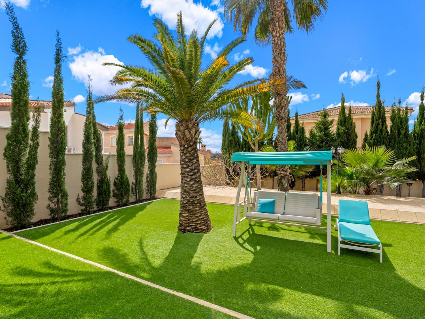 Bonita villa de 5 dormitorios totalmente reformada, situada en una amplia parcela orientada al oeste en la popular zona de Ciudad Quesada. La vivienda cuenta con 170 m² construidos y ha sido renovada recientemente. En la planta principal encontramos 5 dormitorios dobles y 2 baños, uno de ellos en suite en el dormitorio principal. Todos los dormitorios, excepto uno, disponen de armarios empotrados. En esta planta también se encuentra un amplio salón con chimenea, una cocina abierta y una terraza acristalada que actualmente se utiliza como comedor y oficina, aportando mucha luz natural. La planta inferior dispone de baño, lavadero y trastero, con acceso independiente desde el jardín. La villa está equipada con: Aire acondicionado (en todos los dormitorios, salón y comedor)Ventanas de doble acristalamientoChimeneaPuerta automática de acceso para vehículos Zona exterior La propiedad se encuentra en una parcela de 1.069 m² orientada al oeste, con varias zonas exteriores ideales para disfrutar del clima mediterráneo. El jardín dispone de: Piscina privada con zona para tumbonasZona de comedor cubierta con cocina exterior / barbacoaVarias áreas con césped artificialCarport con espacio para un coche Una excelente propiedad con mucho espacio exterior y gran privacidad, situada cerca de todos los servicios de Ciudad Quesada.
