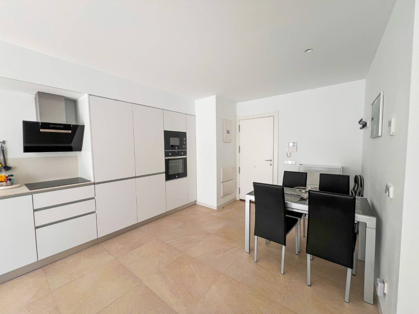 La vivienda ofrece 2 dormitorios y 2 baños completos, con un dormitorio principal en suite que aporta privacidad y comodidad. La zona de día se configura como un espacio abierto y bien conectado, donde la cocina de líneas modernas se integra con el salón, generando un ambiente contemporáneo y versátil, perfecto para la vida diaria y para recibir invitados.