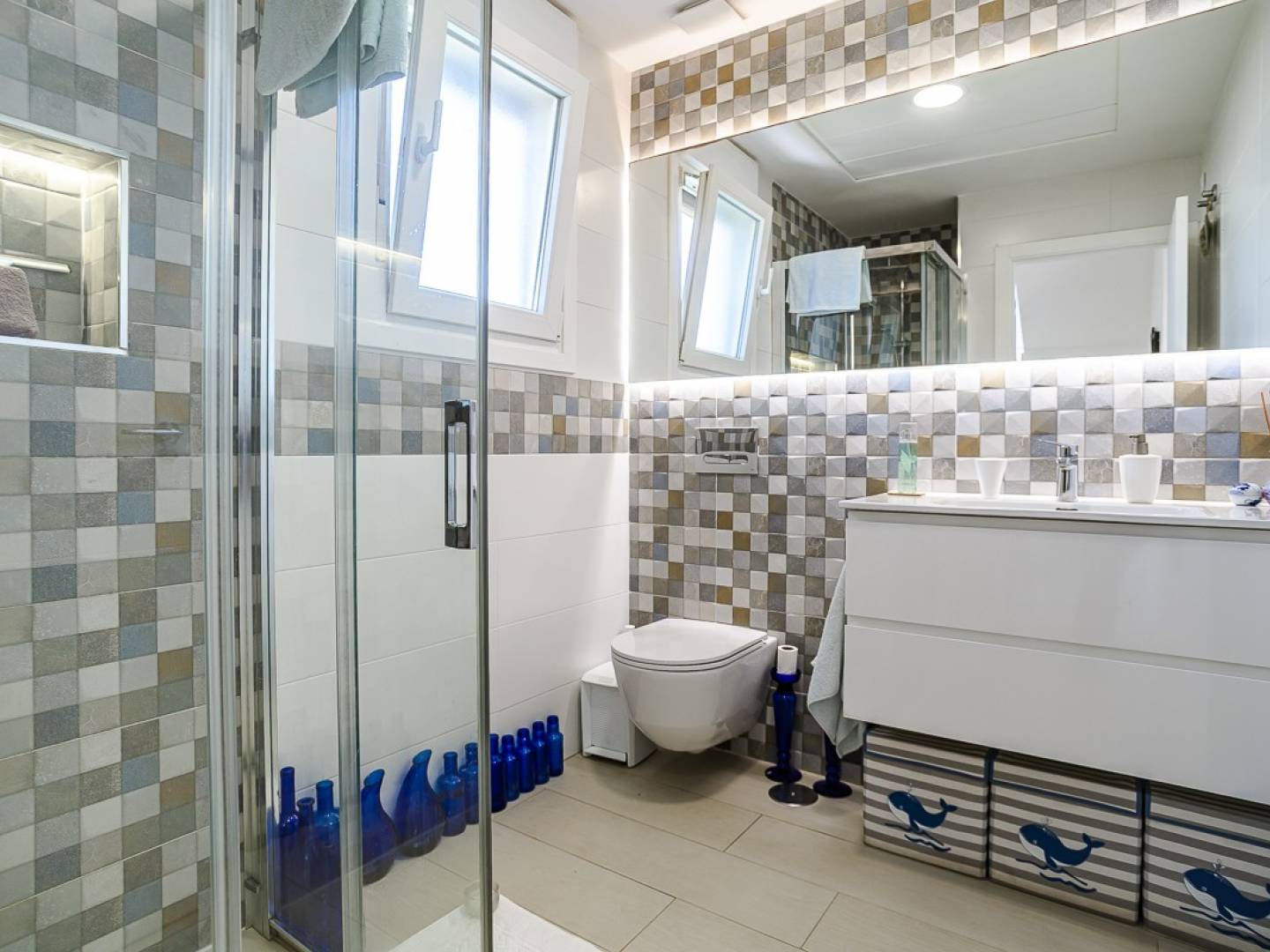La vivienda destaca por sus acabados de alta calidad y equipamiento premium, incluyendo armarios empotrados, aire acondicionado, calefacción por suelo radiante, ventanas de aluminio con doble acristalamiento Climalit, elegantes suelos de gres y puertas interiores de madera, garantizando confort, eficiencia y estilo.