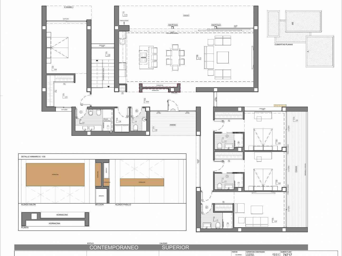 El interior de la villa está diseñado para ofrecer un espacio acogedor y funcional. Con cuatro amplios dormitorios, cada uno con armarios empotrados, la villa garantiza espacio suficiente para toda la familia. Los seis baños están equipados con acabados modernos, proporcionando comodidad y estilo. La cocina está equipada con electrodomésticos de última generación, facilitando las tareas diarias. El sistema de domótica permite controlar diversos aspectos del hogar, como la climatización y las persianas eléctricas, desde cualquier lugar. El videoportero añade un nivel extra de seguridad, permitiendo identificar a los visitantes antes de abrir la puerta. Cada detalle ha sido cuidadosamente seleccionado para ofrecer un hogar de lujo y confort.